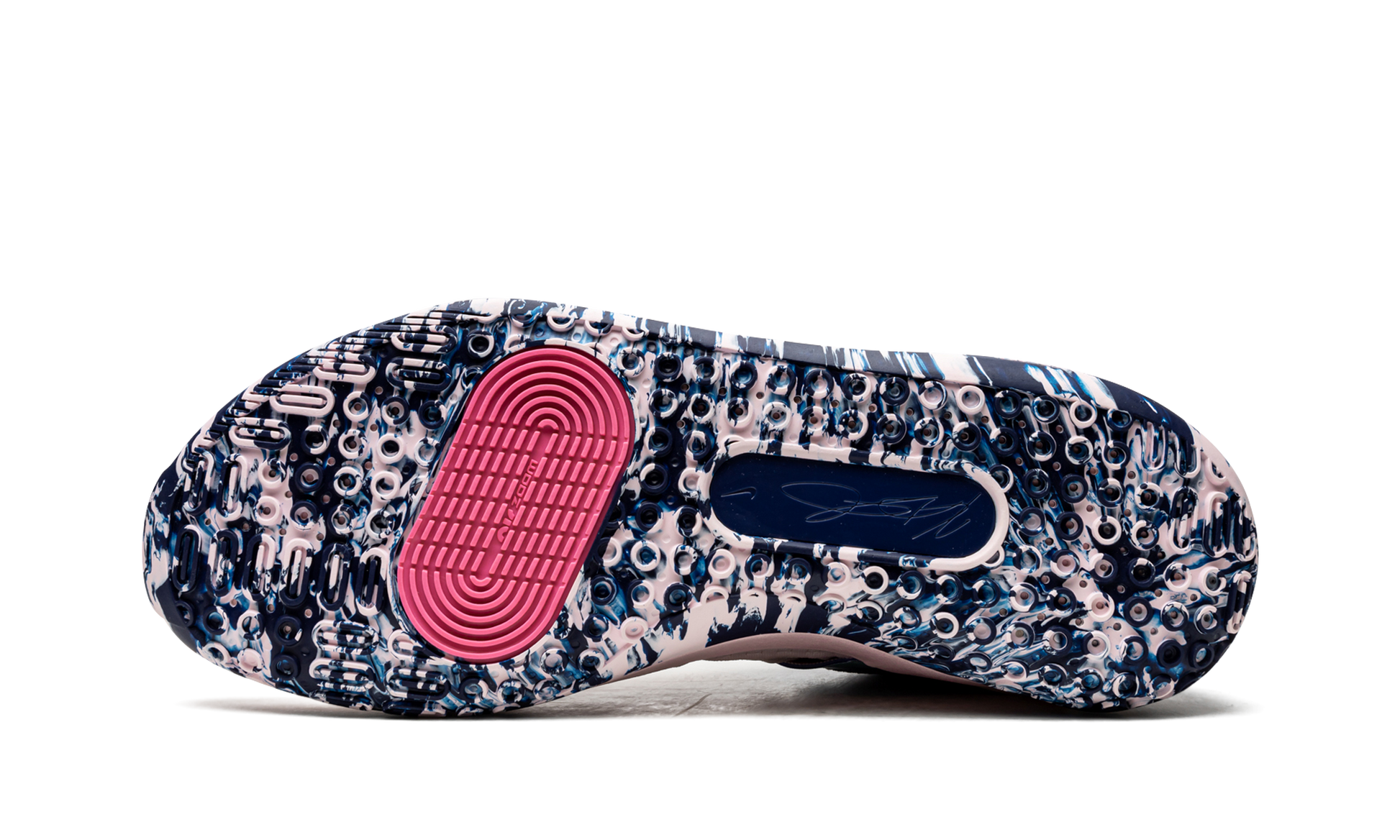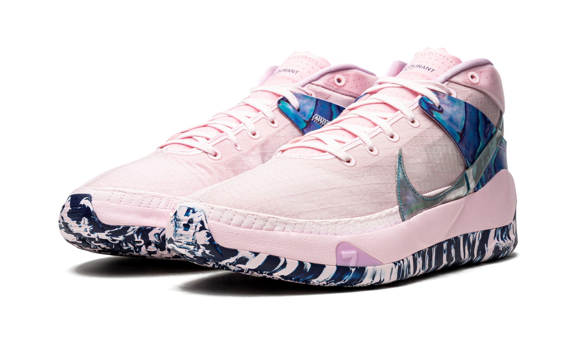 The Nike KD 13 “Aunt Pearlâ€?is a special colorway of Kevin Durant's thirteenth signature shoe with Nike Basketball that honors his beloved late aunt. who passed away in 2000. The “Aunt Pearlâ€?theme began in 2012 on the Nike KD 4. and has continued in the years since as a way for Durant to incorporate his identity into his signature footwear line. The upper's textile material is finished off in a warm hue of pink dubbed “Pink Foam.â€?A pearl Swoosh resides on either side of the upper and blue and aqua accenting appears on the overlay panel on the heel. Durant's jersey number â€?â€?is embossed onto the forefoot of the pink midsole. A blue and pink marbled outsole finishes off the look of the Nike KD 13 “Aunt Pearl.â€?Release date: October 24. 2020.