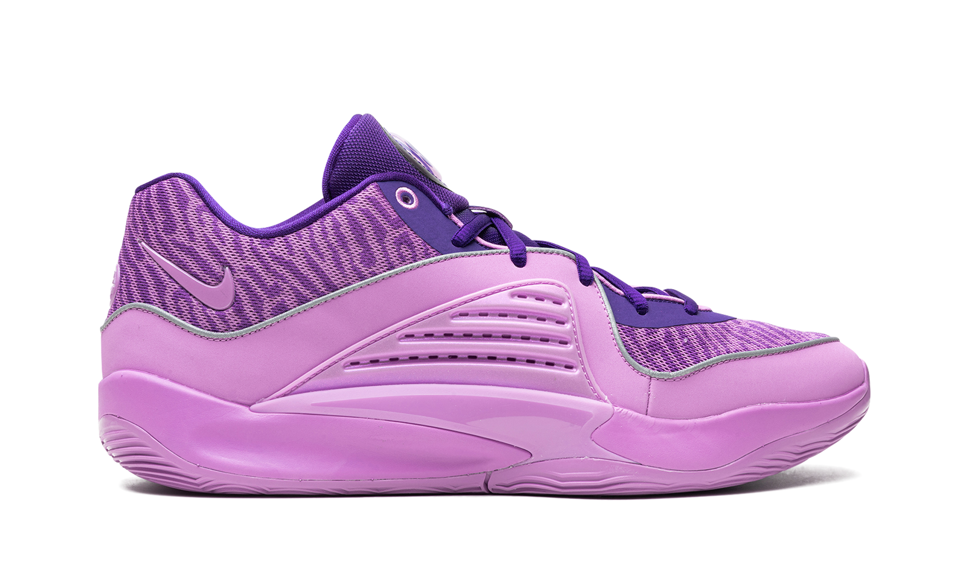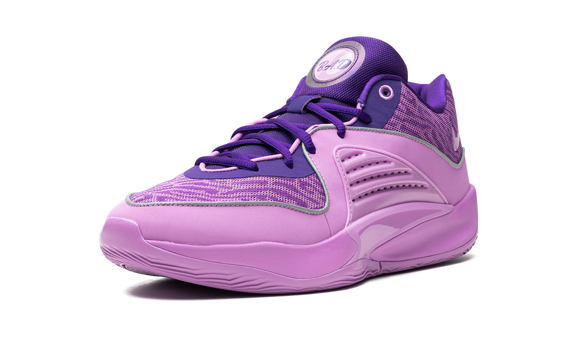 The Nike KD 16 "B.A.D" is a colorway of Kevin Durant's sixteenth signature shoe with Nike Basketball that honors his late grandmother. Barbara A. Davis. Debuted on the Nike KD 15. the “B.A.Dâ€?colorway theme returns on the KD 16 as the basketball star pays tribute to the life and legacy of his late grandmother. The upper features a Field Purple and Rush Fuchsia color scheme. The right tongue has Durant's signature branding with Nike while a “B.A.Dâ€?logo appears on the left tongue. Another “B.A.Dâ€?logo can be seen on the insole. Reflective detailing can be found throughout the shoe. Release date: December 2023