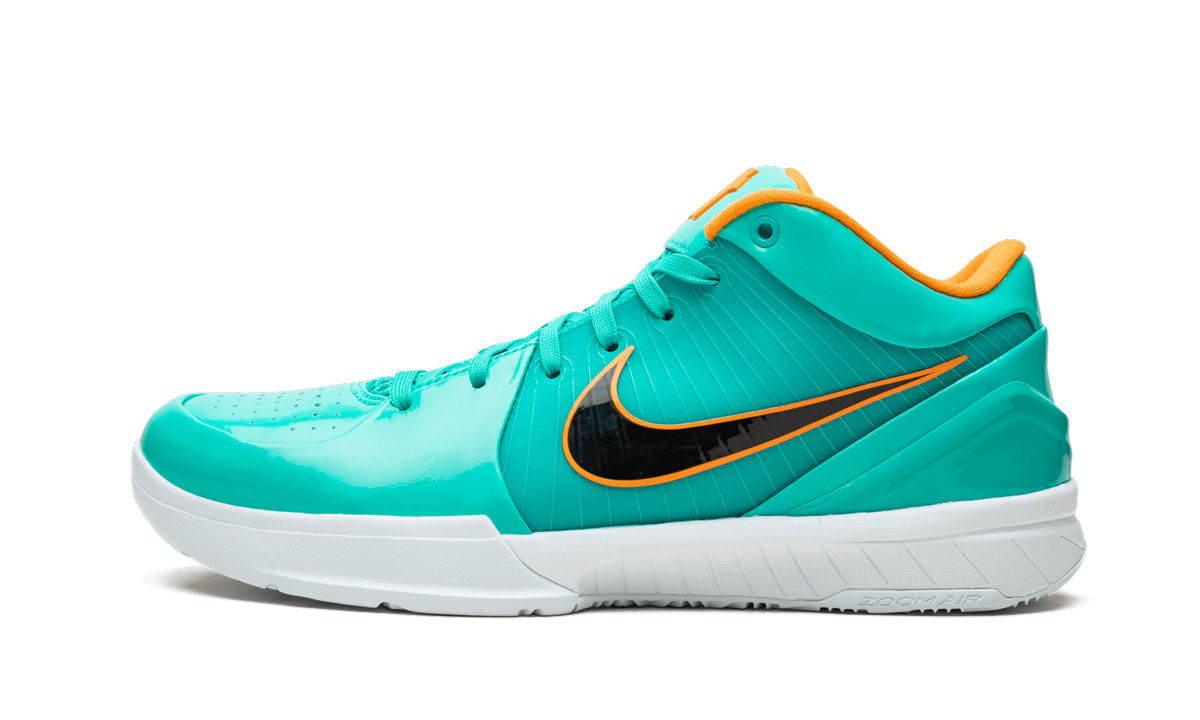 The Undefeated x Nike Kobe 4 Protro PE “DeMar DeRozanâ€?is an exclusive colorway made for San Antonio Spurs guard DeMar DeRozan. The former USC basketball star is one of four Team Kobe members to receive a makeover specific to his team's uniform colors in conjunction with Undefeated's collaboration with Nike Basketball on the Kobe 4. Using retro Spurs colors as the inspiration behind the design. the base features a teal Flywire mid-panel base with a mango outlined black Swoosh on top. A teal patent leather covers the toe. ankle collar. and heel. Bright mango accents are found on the sock-liner. as well as on the dual-branded tongues featuring both Undefeated and Kobe logos. The numbers â€?â€?and â€?4â€?that Bryant wore during his time as a Laker. appear in orange on the heel. Completing the low-top silhouette is a semi-translucent orange and white outsole. The Undefeated x Nike Kobe 4 Protro PE “DeMar DeRozanâ€?was released on August 24th. 2019.