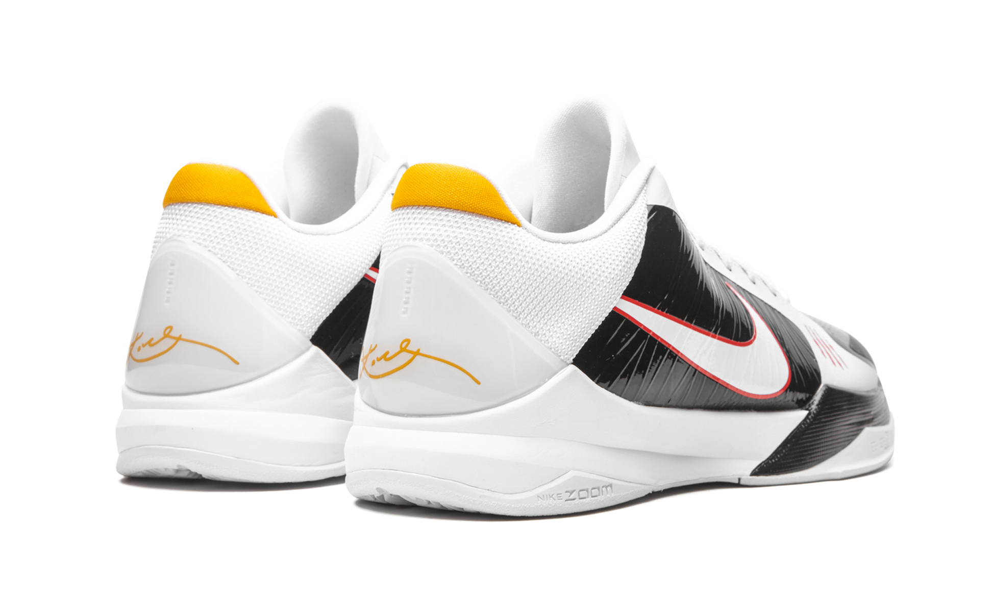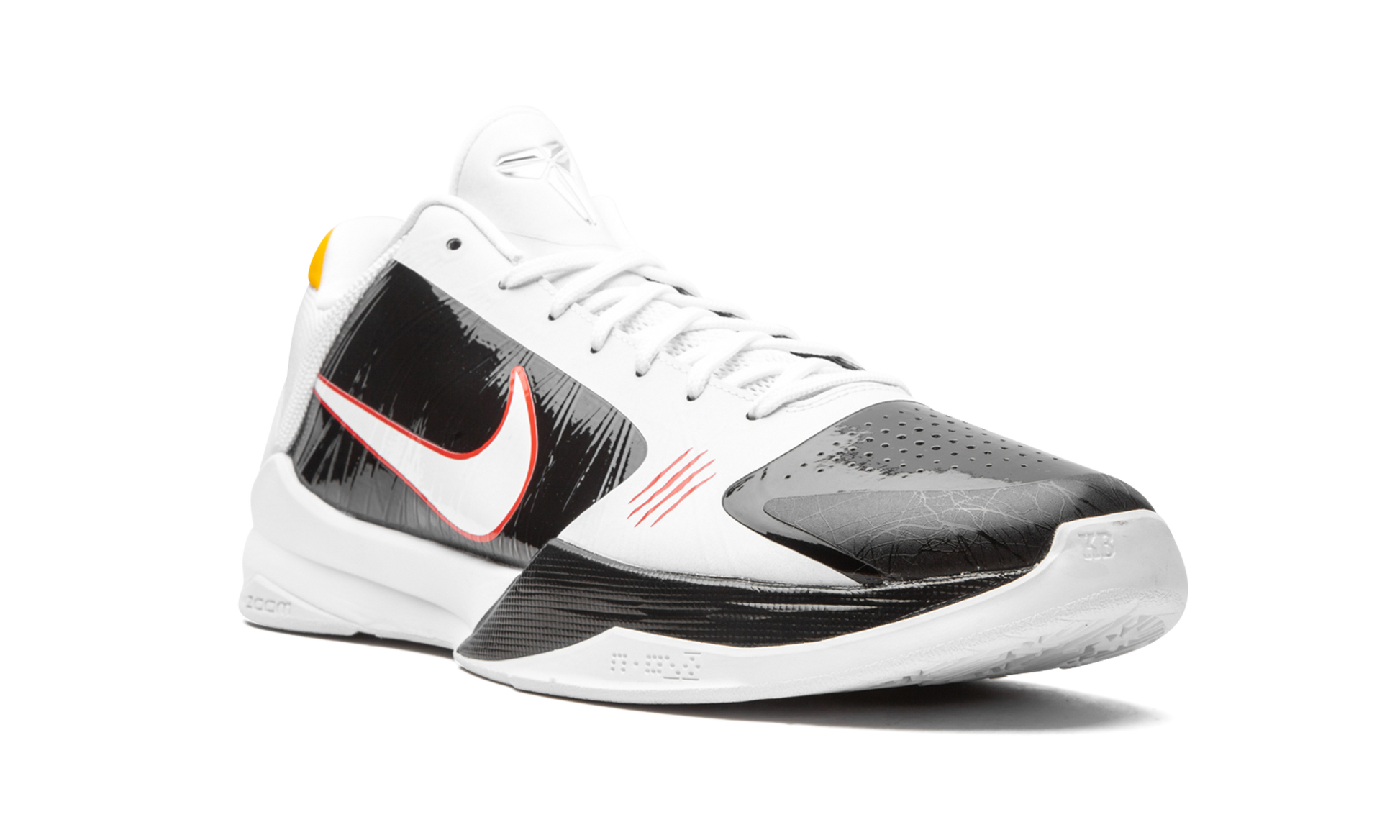The Nike Kobe 5 Protro “Alternate Bruce Leeâ€?is a second Bruce Lee inspired colorway of Kobe Bryant's fifth signature performance basketball shoe with Nike. Released by Nike Basketball in November 2020. the “Alternate Bruce Leeâ€?colorway joins the initial yellow-based “Bruce Leeâ€?design in linking two legends in their respective fields on Bryant's popular hoops shoe. Whereas the “Bruce Leeâ€?features the predominantly yellow look. the “Alternate Bruce Leeâ€?displays a black base on the perforated toe and smooth mid-panel. Contrasting white overlays on the forefoot and eyelets balance the look and allow for the black accenting to garner attention. A red outlined white Swoosh logo can be found on either side. Additional branding appears in the form of Bryant's signature in yellow text on the white TPU clip on the heel and the “Sheathâ€?branding on the white tongue. White mesh detailing covers the heel and red scratch marks near the toe are in reference to the movie “Enter the Dragonâ€?that Lee starred in. Release date: November 24. 2020.