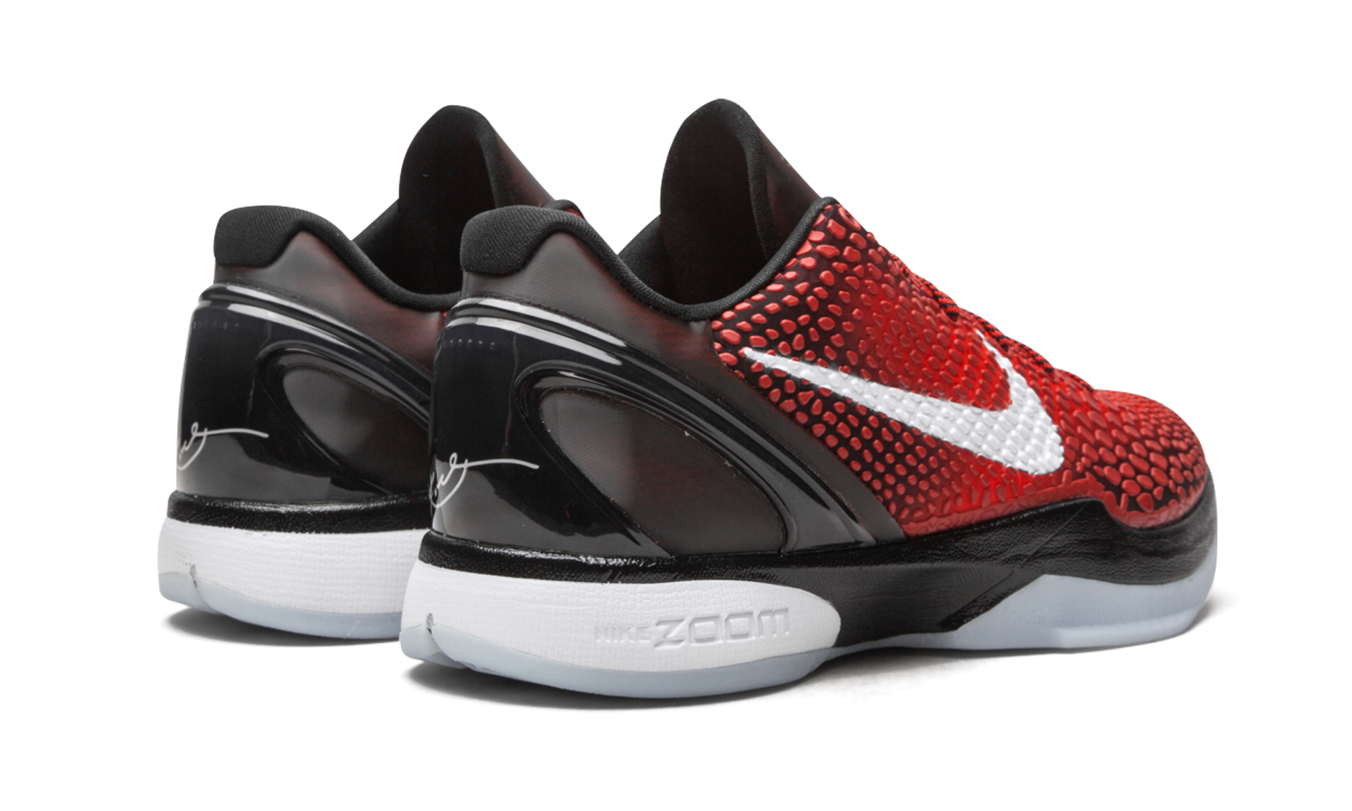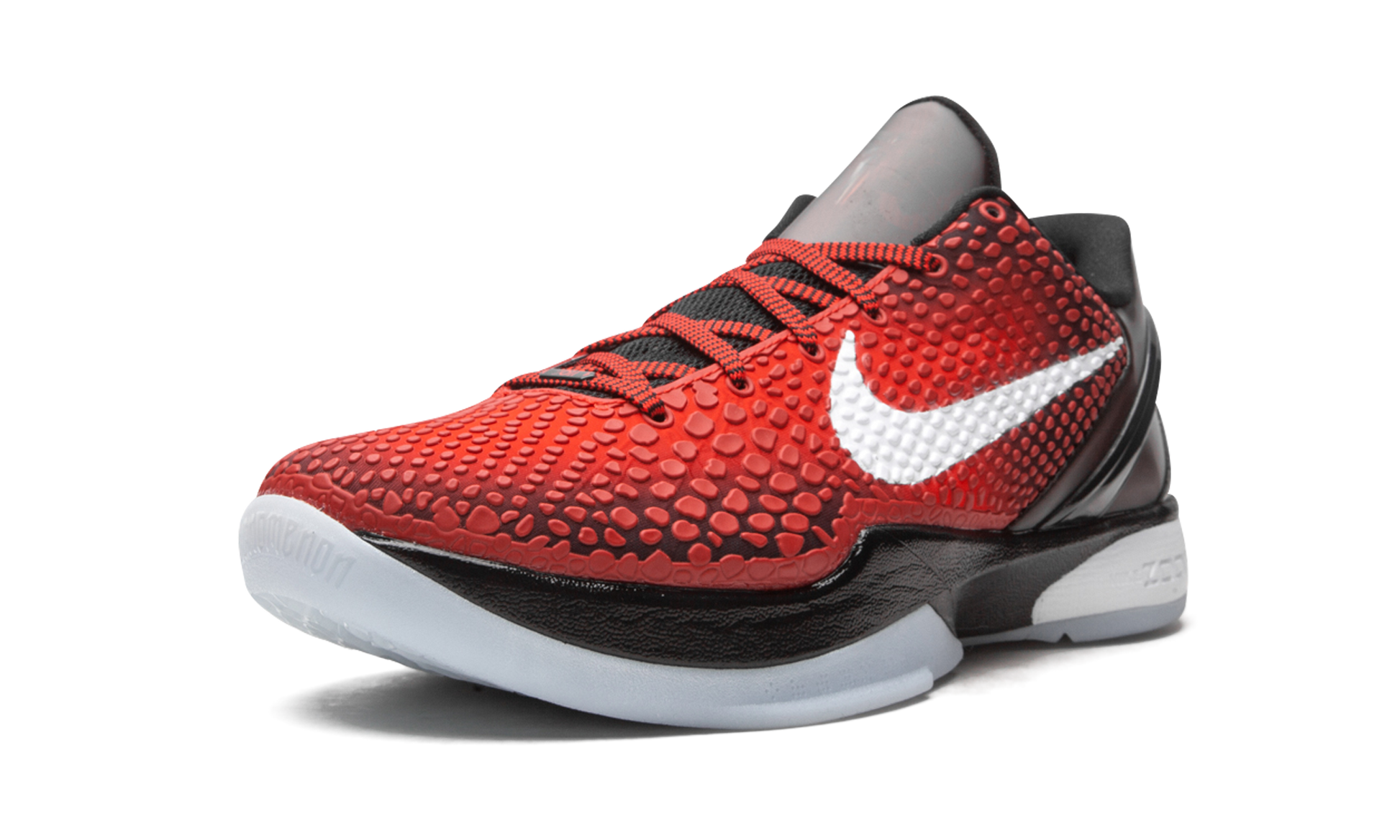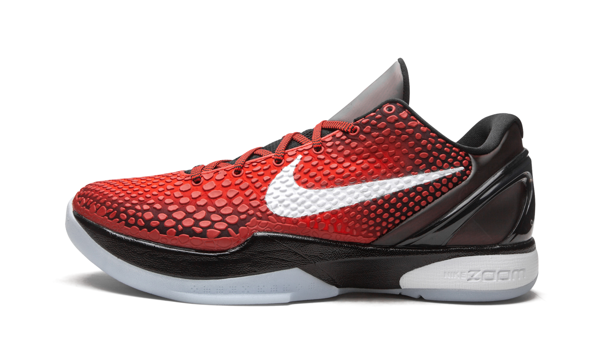 The Nike Kobe 6 Protro “All-Starâ€?is a March 2021 re-release of Kobe Bryant's sixth signature shoe with Nike Basketball in the colorway that Bryant wore during the 2011 NBA All-Star Game. A keystone design in Kobe Bryant's signature footwear collection with Nike. the Kobe 6 Protro is a high performing basketball shoe with an ahead-of-its-time design that remains as wearable today as it did when it was originally released in 2011. The “All-Starâ€?edition was re-issued by Nike on its 10-year-anniversary in March 2021. Like the “OGâ€?look. bright red “scalesâ€?appear in an all-over pattern on the upper. save for the black heel counter sporting Bryant's signature. Black undertones can be picked up on various points in the design of the upper. particularly near the forefoot and heel. A white painted Swoosh graces either side. The black leather tongue subtly displays Kobe's signature “The Sheathâ€?logo in a glossy tonal print. Zoom Air cushioning is embedded within the black painted midsole and provides the wearer with optimal comfort. An icy semi-translucent outsole finishes off the look. Release date: March 8. 2021.