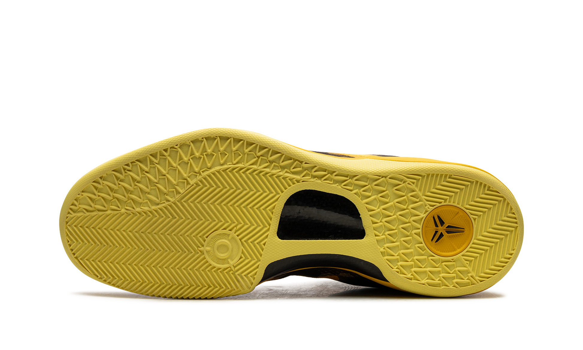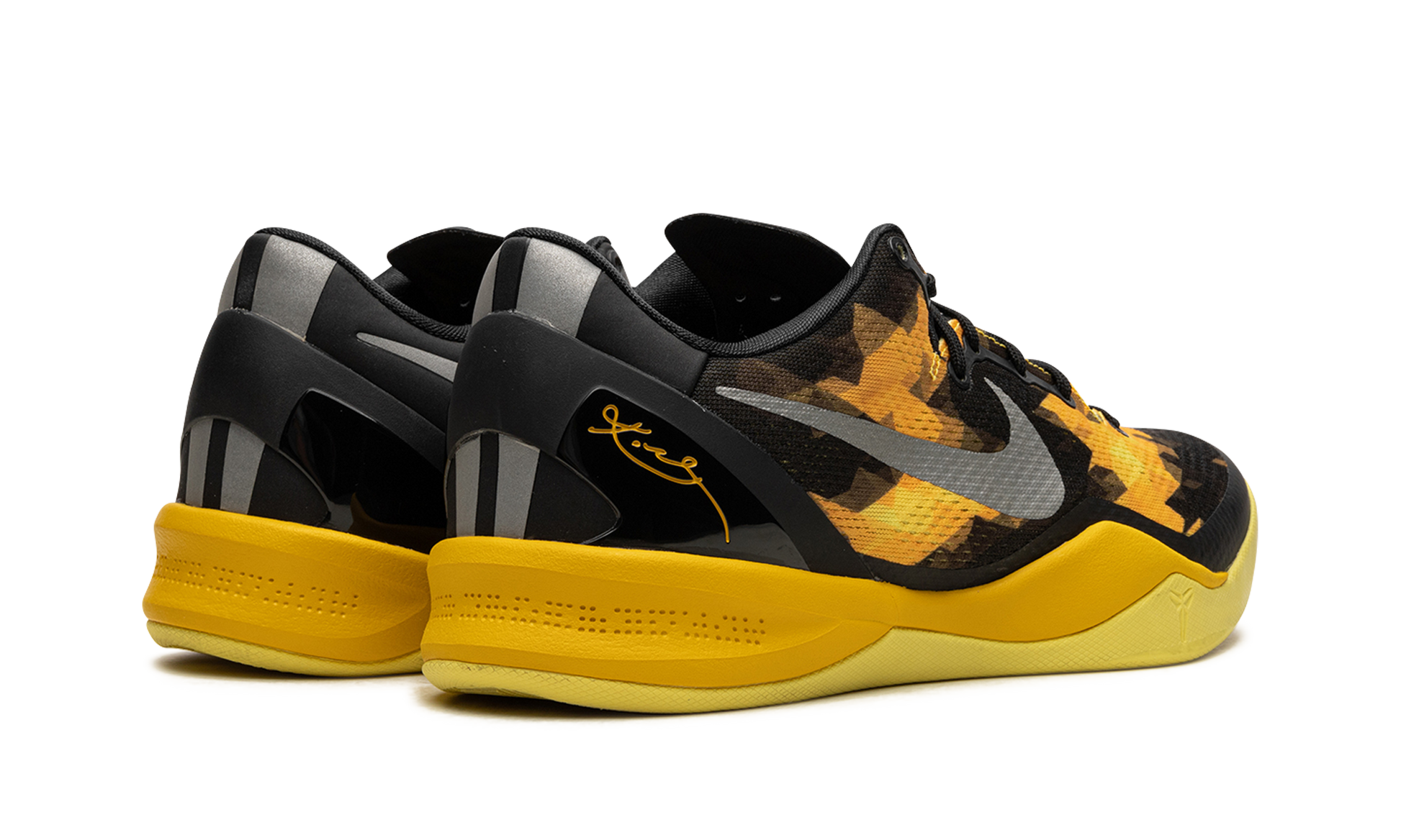 The launch colorway of the Kobe 8. this now-classic look for the eighth Kobe Bryant Nike signature shoe features a black and yellow graphic across the upper accented with silver Swooshes.
