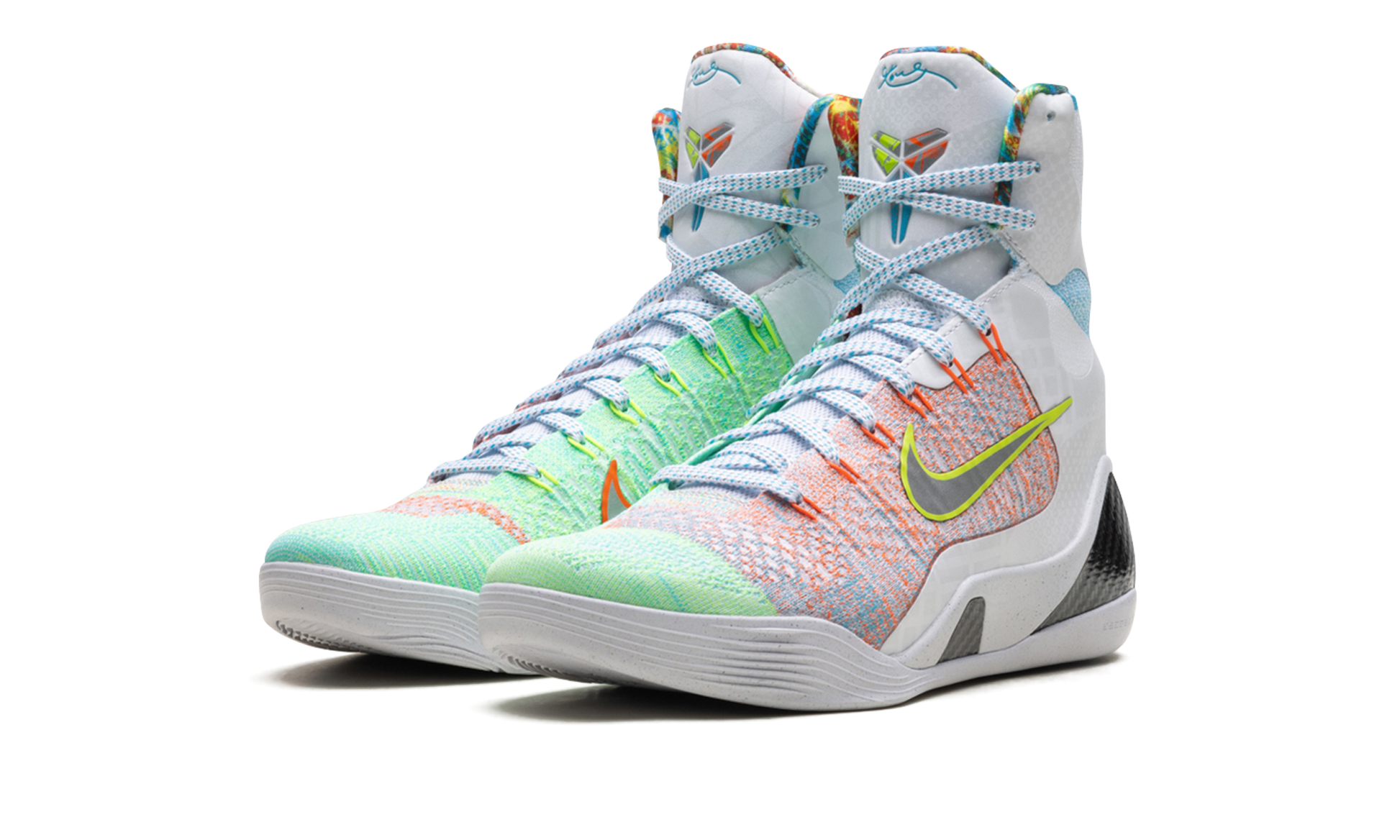 The Nike Kobe 9 Elite High Protro 'What The' is a maximalist celebration that stitches together the most iconic colorways and details from the original Kobe 9 line. Released to celebrate the shoe's 10th anniversary. this Protro version updates the performance for the modern game while retaining its artistic. high-top silhouette.
