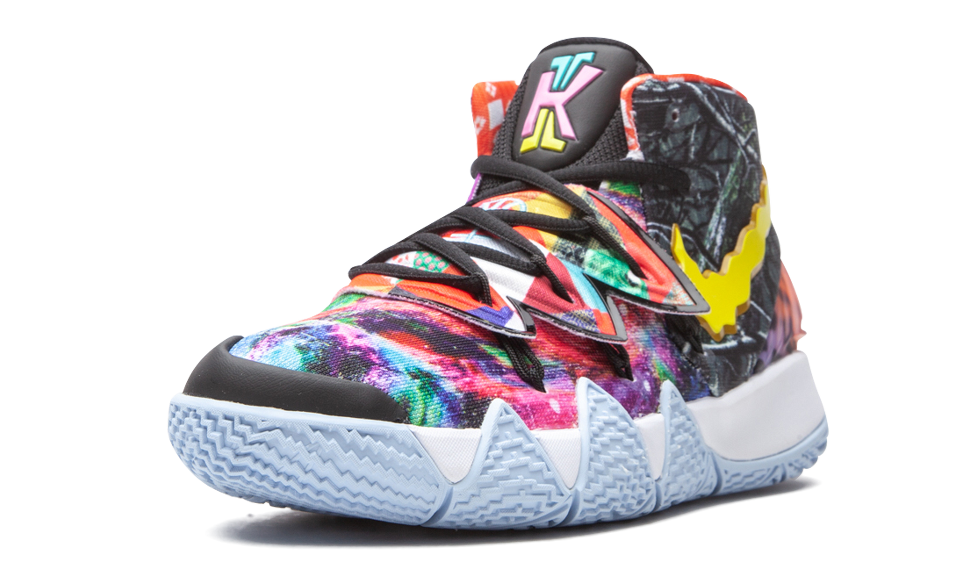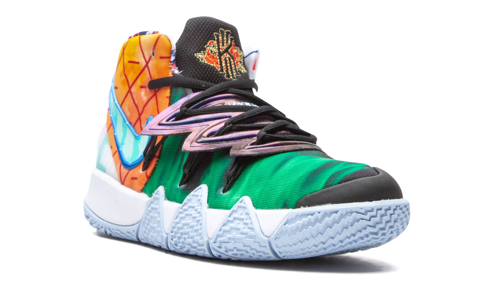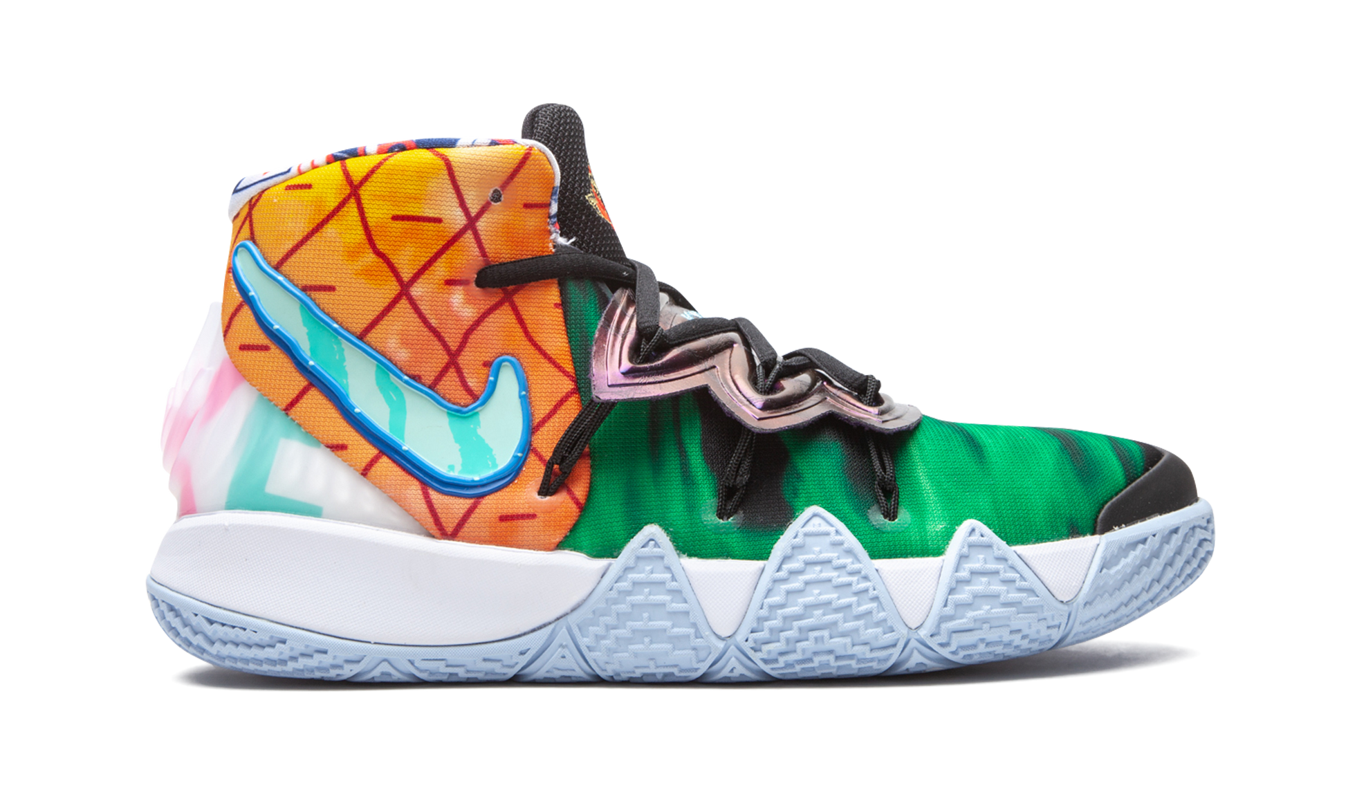 The Nike Kybrid S2 "Best of" is a grade-school sized hybrid performance basketball shoe that mixes together some of the most popular designs in the Nike Kyrie line. The "Best of" colorway features overtures to the Nike Kyrie 5's Flytrap lace overlay and the Kyrie 6's Seeing Eye heel counter. Several nods to the SpongeBob SquarePants x Nike Kyrie 5 come into play in the design. The left shoe displays a yellow wavy Swoosh in reference to the cartoon character's yellow porous body and the right shoe features a pineapple motif that represents the look of SpongeBob's home.