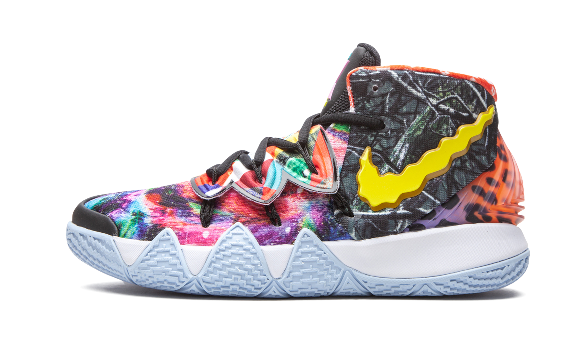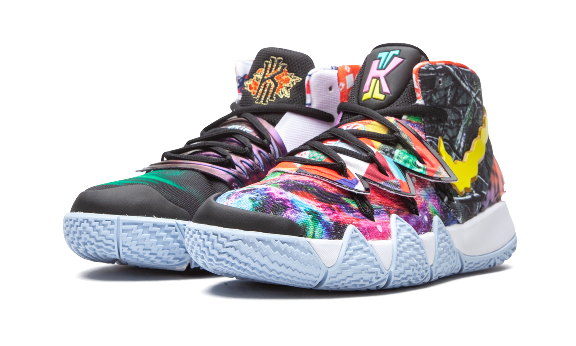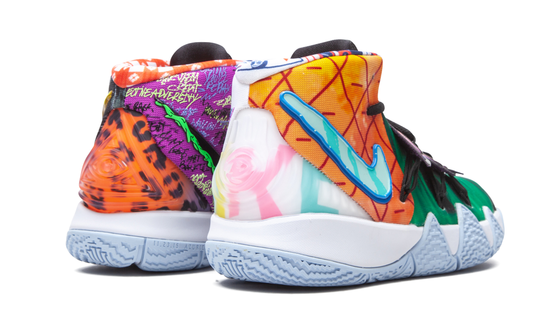 The Nike Kybrid S2 "Best of" is a grade-school sized hybrid performance basketball shoe that mixes together some of the most popular designs in the Nike Kyrie line. The "Best of" colorway features overtures to the Nike Kyrie 5's Flytrap lace overlay and the Kyrie 6's Seeing Eye heel counter. Several nods to the SpongeBob SquarePants x Nike Kyrie 5 come into play in the design. The left shoe displays a yellow wavy Swoosh in reference to the cartoon character's yellow porous body and the right shoe features a pineapple motif that represents the look of SpongeBob's home.