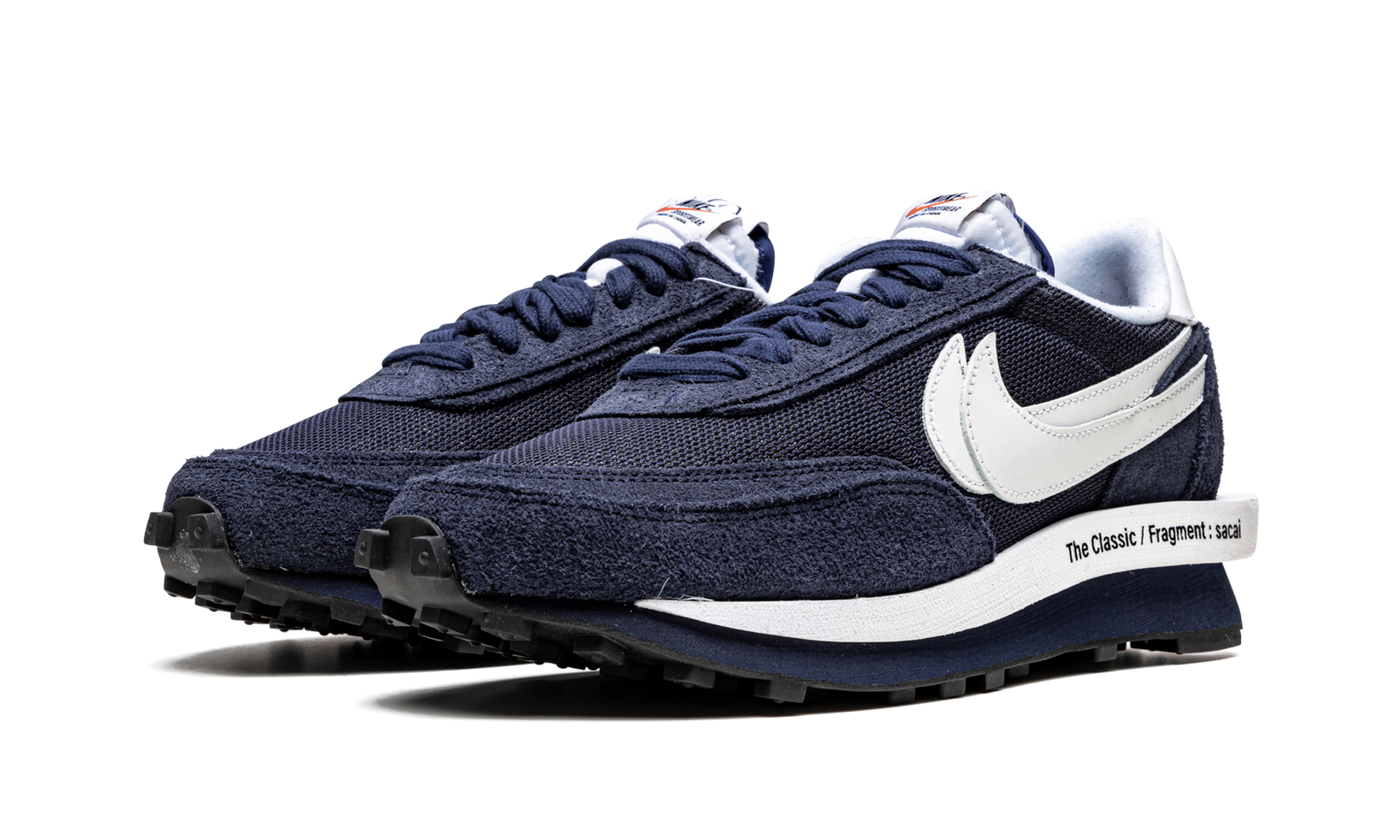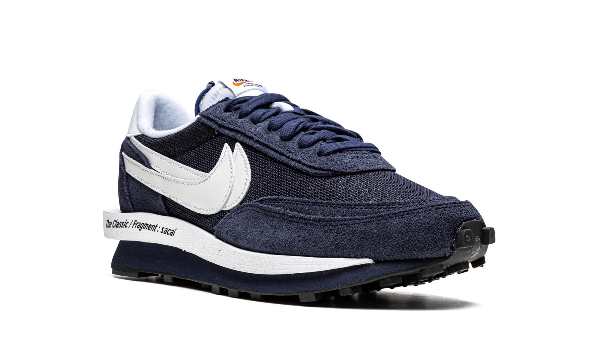 The Fragment x Sacai x Nike LDWaffle “Blackened Blueâ€?is a yet another chapter in the three-way collaboration between Hiroshi Fujiwara and Chitose Abe's clothing brands and Nike on the hybrid shoe. The “Blackened Blueâ€?is one of multiple colorways of the fusion shoe that combines elements of the Nike LDV and Waffle Racer released by Fragment. Sacai. and Nike in 2021. Black mesh can be found on the base while Blue Void hairy suede appears on the overlays on the forefoot. eyelets. and heel. Two white leather Swooshes are layered over one another on either side. Dual Sacai and Nike branding is printed on the white leather heel tab. Two sets of navy blue laces are placed on top of the stacked tongues. The aforementioned design elements are taken from the original Sacai x Nike LDWaffle. Text reading “The Classic / Fragment : sacaiâ€?is printed on the white foam midsole. Release date: August 27. 2021