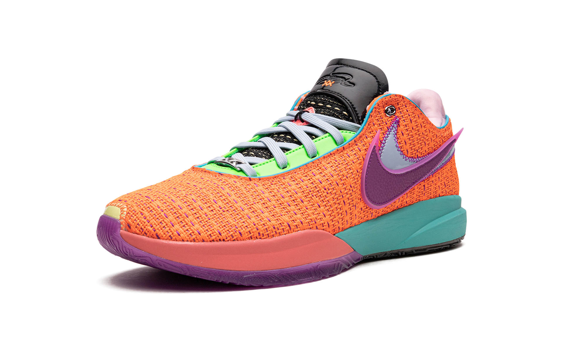The Nike LeBron 20 “Chosen Oneâ€?is a head-turning colorway of LeBron James's twentieth signature shoe. The Nike LeBron 20's “Chosen Oneâ€?colorway is inspired by LeBron's nickname that he earned way back when he was a high school basketball player at St. Vincent St. Mary's in Akron. Ohio. The shoe features a Total Orange mesh design with a Vivid Purple Swoosh layered over a grey Swoosh on either side. A bright neon green overlay is found on the eyelet panel. giving the shoe another eye-catching design element. LeBron's signature Nike branding is found on the tongue.