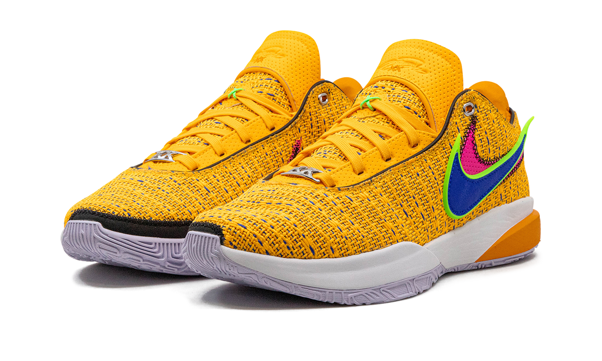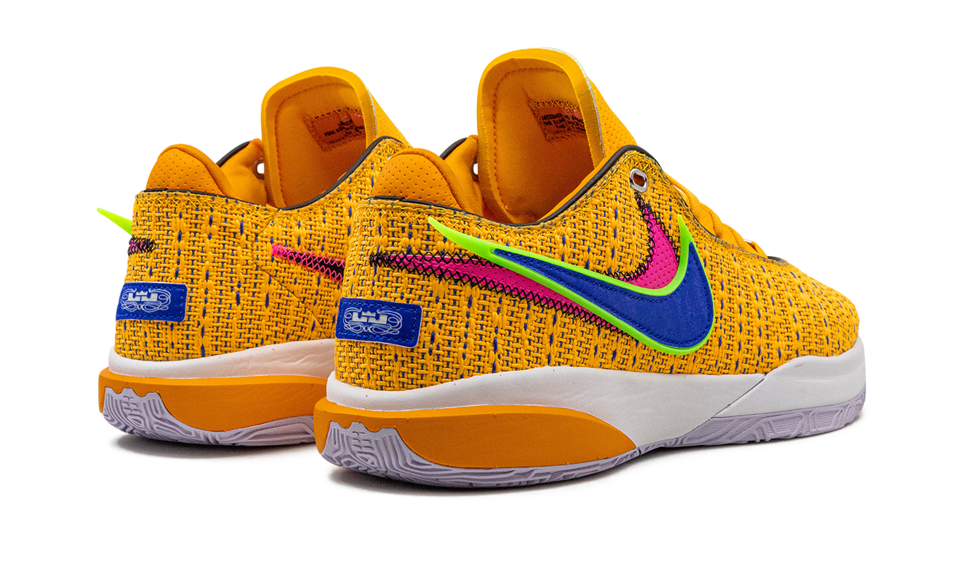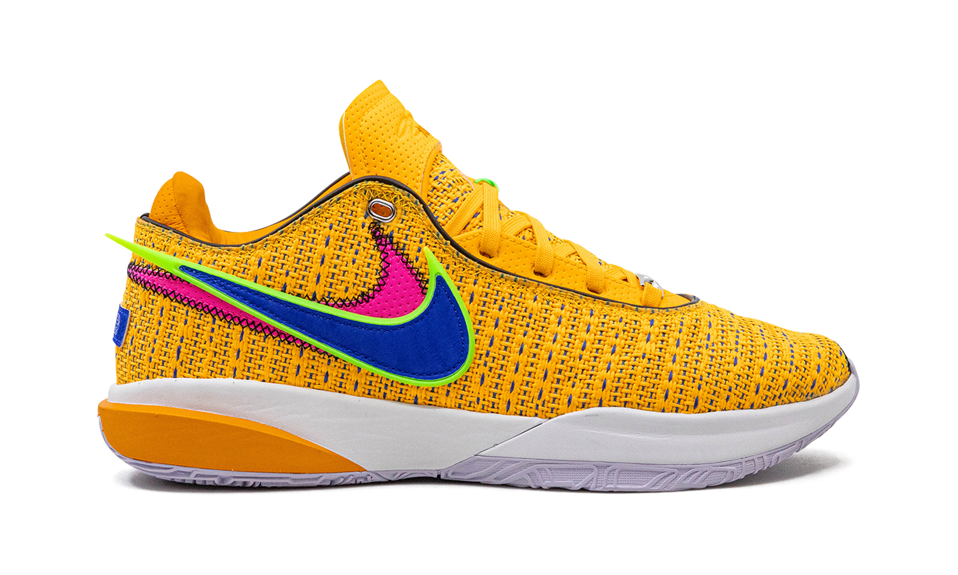 The Nike LeBron 20 “Laser Orangeâ€?is a colorway of LeBron James's twentieth signature basketball shoe with a can't-miss appearance. Dubbed the “Laser Orange.â€?this colorway of LeBron's performance sneaker features a bright orange knitted construction with blue fibers woven into the fabric. A blue Swoosh with neon green trim is layered over a hot pink Swoosh on the lateral side of the shoe while a black Swoosh is seen on the medial side of the shoe. LeBron's signature branding appears throughout the design. Underfoot. a Air Zoom Turbo cushioning unit is placed in the forefoot while a Zoom Air bag is encapsulated in the heel of the midsole. Both features ensure top-level performance on a basketball court. Release date: June 8. 2023