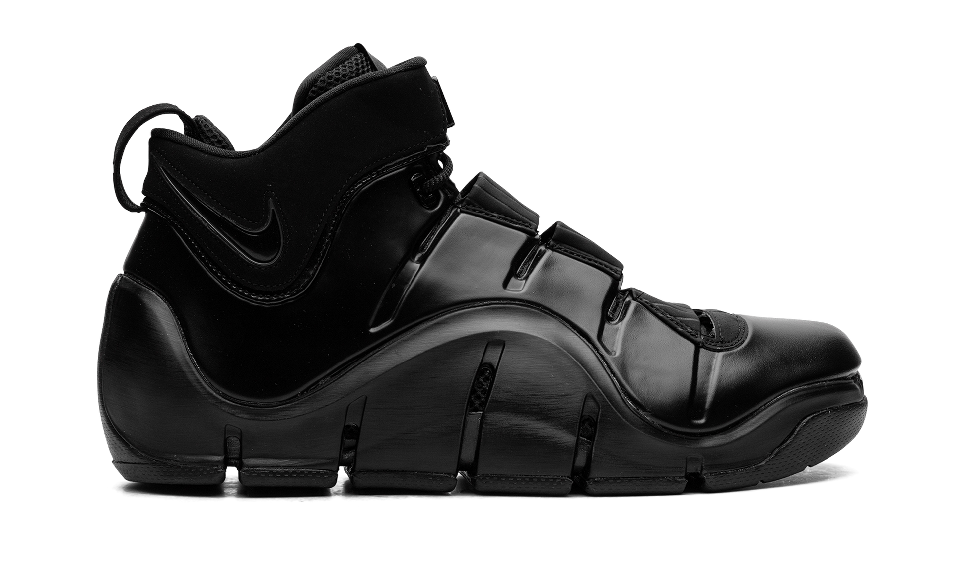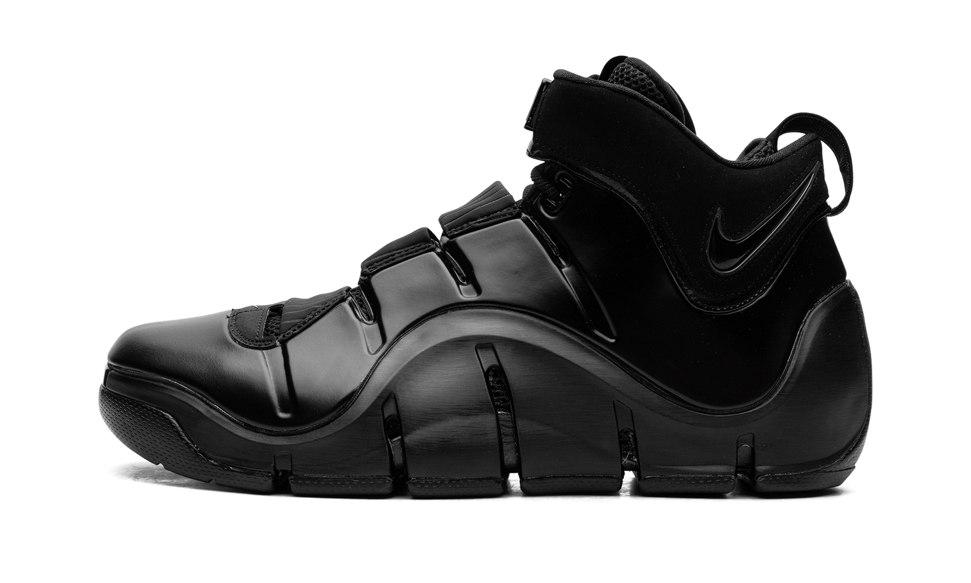 The Nike LeBron 4 "Anthracite" is a monochromatic black colorway of LeBron James's fourth signature shoe. Dubbed the “Anthraciteâ€?colorway. this Nike LeBron 4 features an all-black design. with a black Foamposite shell forming the upper. Black “Nike LeBronâ€?branding can be found on various places throughout the shoe. including on the front of the tongue. A Swoosh logo appears on the sides of the shoe. Underfoot. the shoe's midsole features grooves for adaptable flexibility. Release date: December 12. 2023