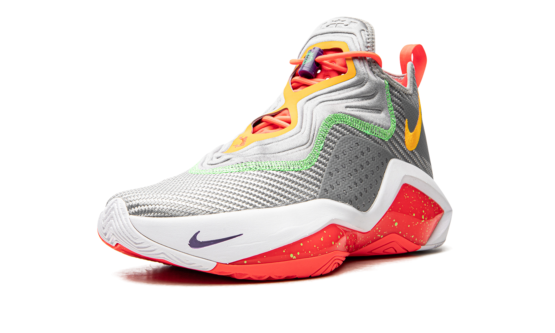 Multicolour LeBron Soldier 14 high-top sneakers from NIKE featuring signature Swoosh logo detail. contrasting panel detail. round toe. front lace-up fastening. elasticated toggle detailing. ankle-length. pull-tab at the heel. branded insole and rubber sole. These styles are supplied by a premium sneaker marketplace. Stocking only the most sought-after footwear. they source and curate some of the most hard to find sneakers from around the world..