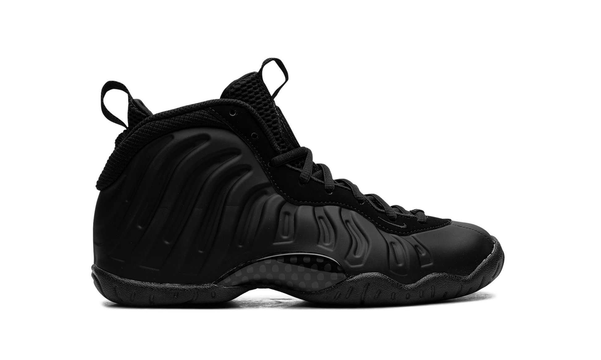 The Nike Air Foamposite One GS "Anthracite" is the youth sizing of the 2023 re-release of the popular colorway that debuted in 2007. Worn by Anfernee “Pennyâ€?Hardaway in the NBA in 1997. the Air Foamposite One was brought back as a lifestyle shoe in the mid-to-late 2000s. The “Anthraciteâ€?colorway was released by Nike in 2007 and was one of the retro basketball sneaker's most sought after designs back in the day. Here. the contemporary version is a one-to-one remake of the original style. The shoe's molded Foamposite shell is designed in Anthracite. or black. Black synthetic nubuck overlays contrast the look. Hardaway's signature â€?-Centâ€?branding appears on the heel and tongue. A smoky translucent rubber outsole completes the stealthy design.