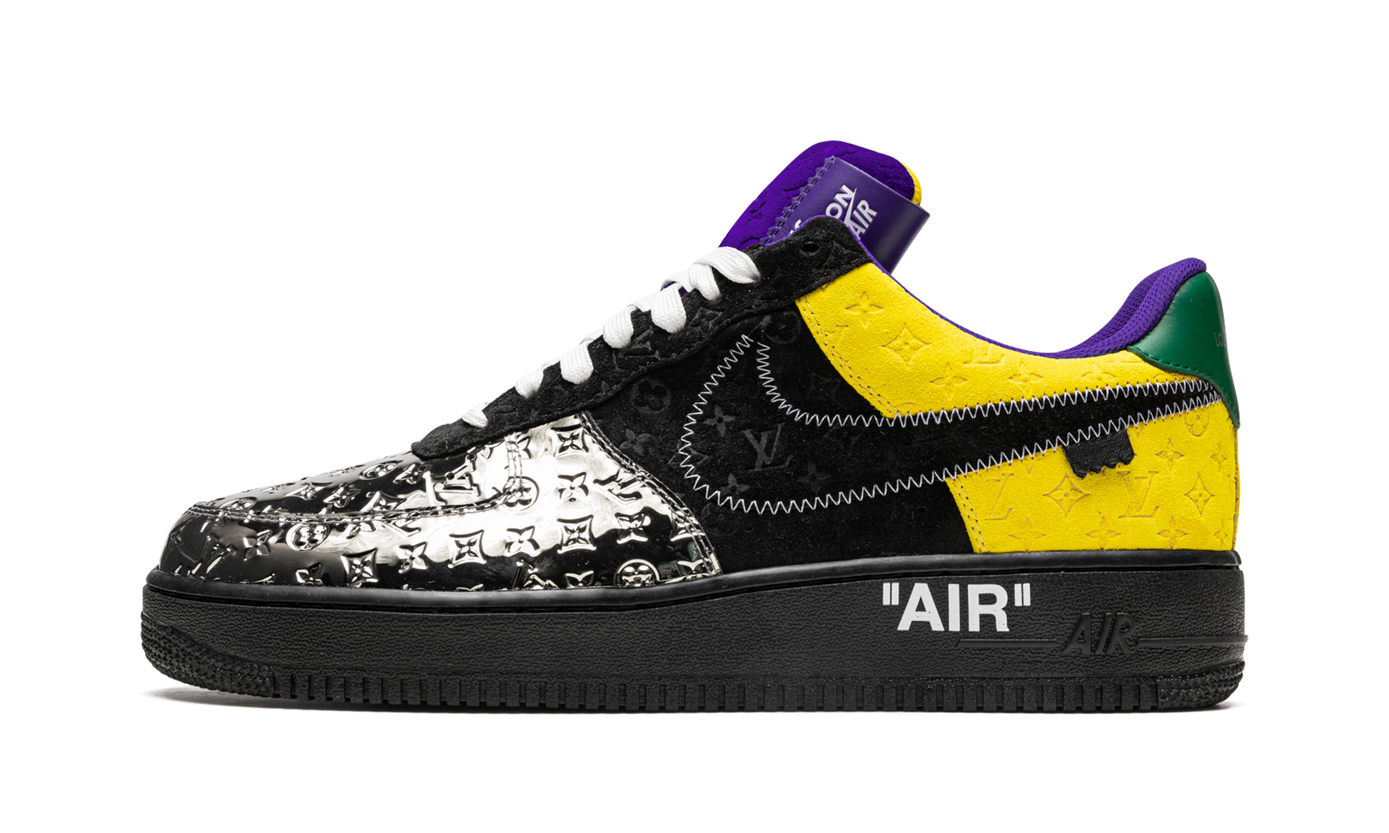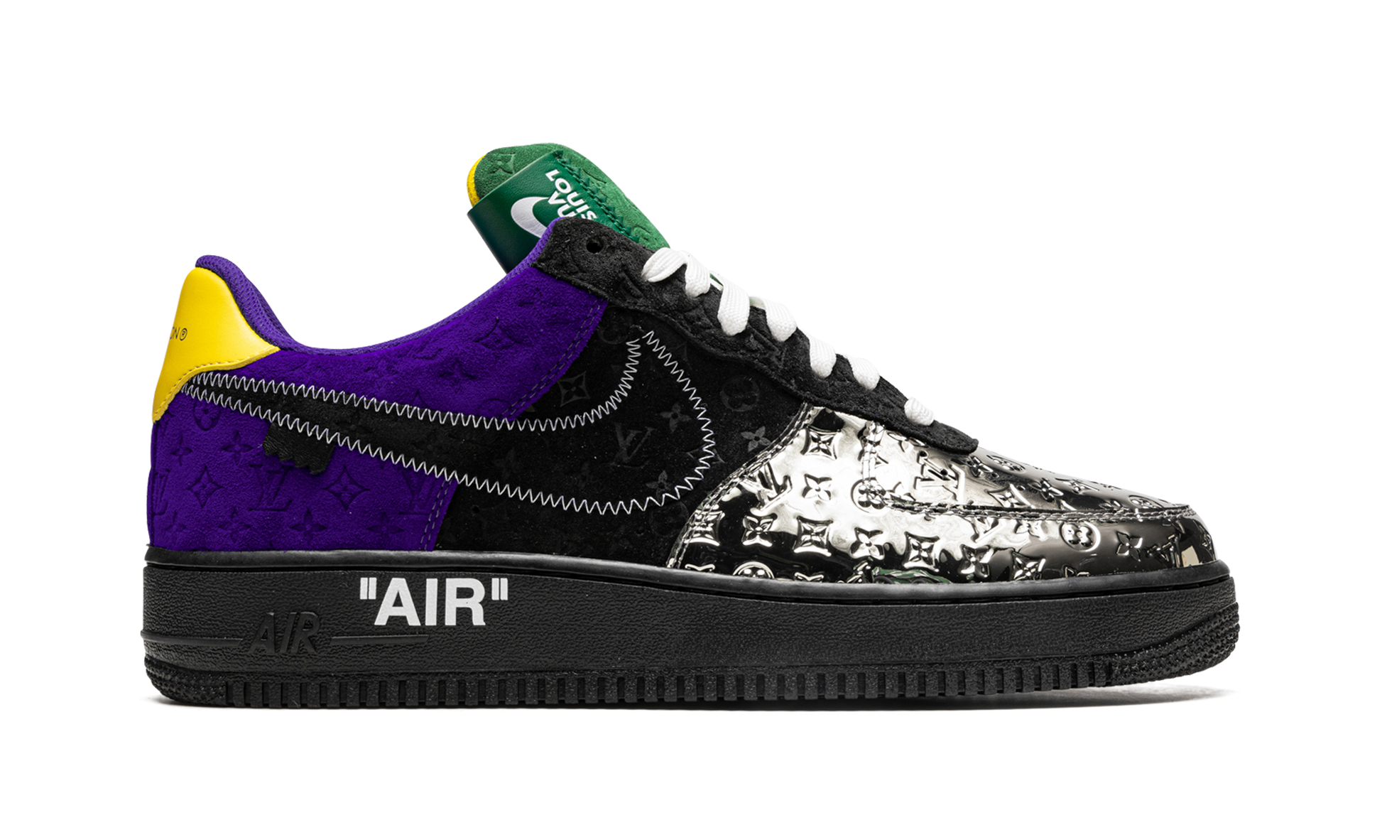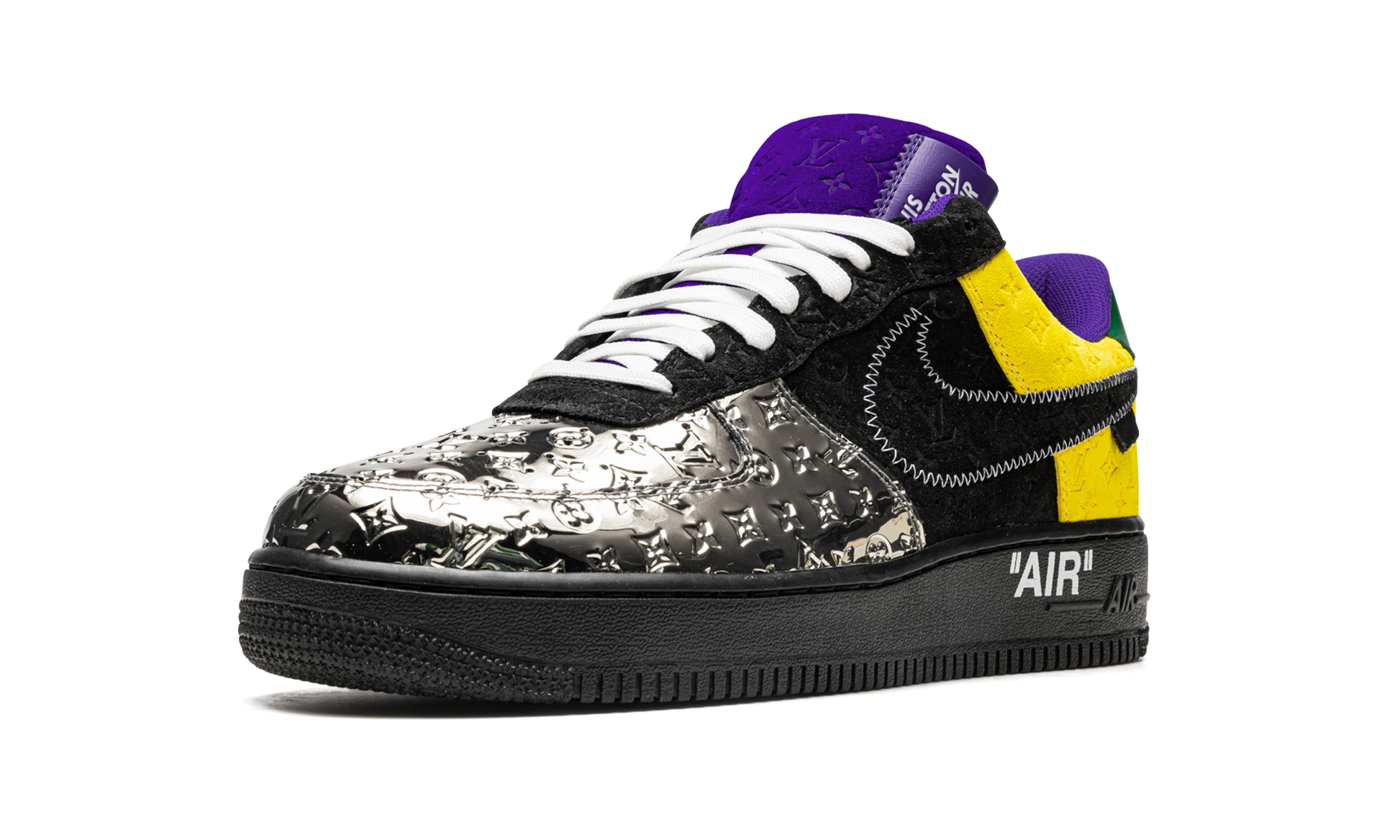 The Louis Vuitton x Nike Air Force 1 Low “Purple Dusk/Metallic Silverâ€?is an eye-catching colorway included in the special collaboration between the revered high fashion brand that was directed by the late Virgil Abloh. From 2022. the “Purple Dusk/Metallic Silverâ€?is one of multiple colorways of the Air Force 1 produced by Abloh. Louis Vuitton. and Nike. It's also one of the most head-turning looks from the series. as well. The shoe features a Metallic Silver leather toe and forefoot with Louis Vuitton's famous monogram print stamped into the material. The brand's monogram print is also printed on the black suede mid-panel. and on the yellow leather heel panel. A stitched Swoosh outline appears on either side of the shoe. Signature details include a reworked “Louis Vuitton Air Force 1â€?logo on the side of the tongue. and a black tab on the lateral side of the Swoosh on the mid-panel. The shoe rides on a black rubber sole. Contrasting white “Airâ€?branding is printed on the lateral side. Made in Italy.