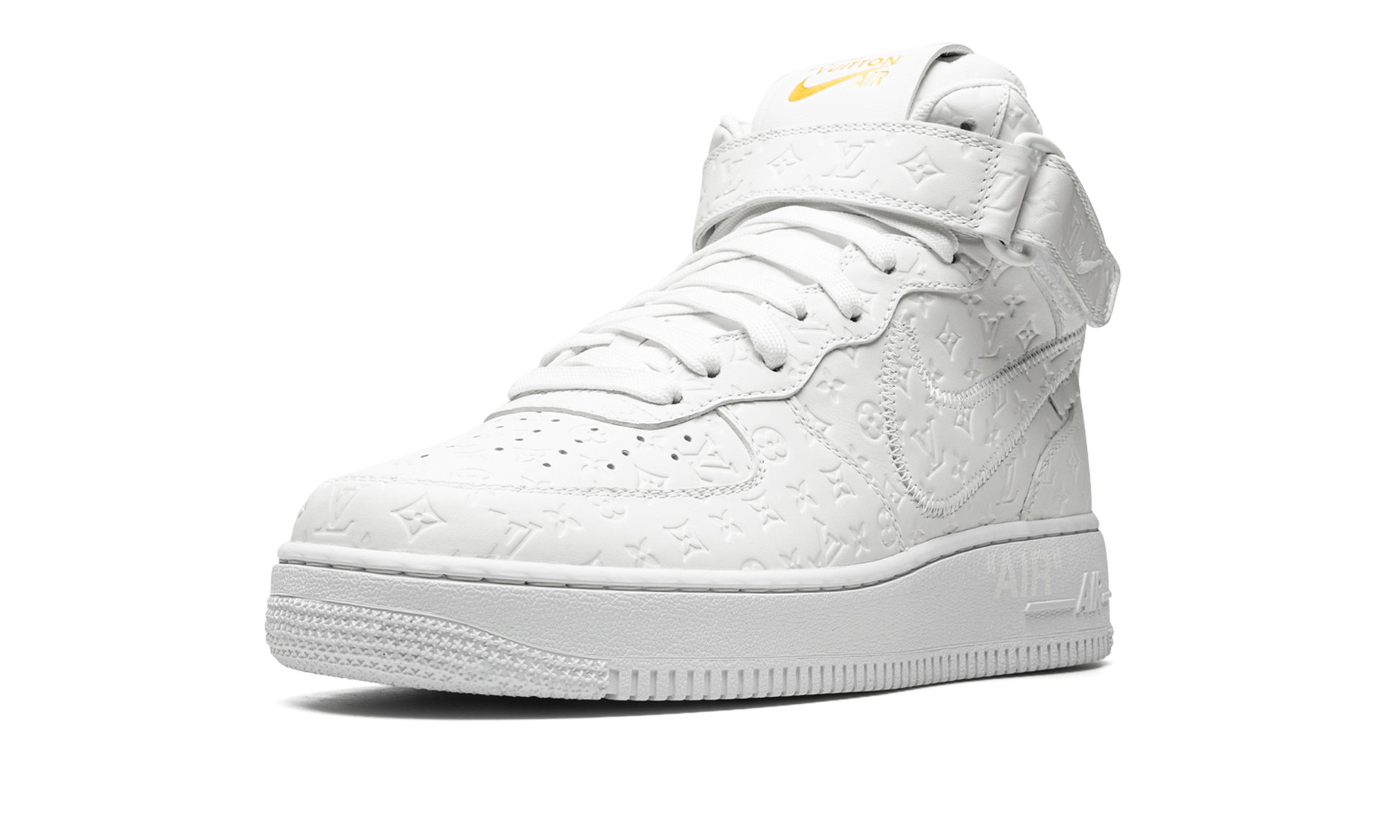 The Louis Vuitton x Nike Air Force 1 Mid “Triple Whiteâ€?is the coveted monochromatic white colorway included in the collaboration by the storied high fashion brand that was directed by the late Virgil Abloh. The “Triple Whiteâ€?is one of multiple colorways of the Air Force 1 produced by Louis Vuitton. Nike. and Abloh in 2022. and one of the most desirable releases of the year. as well. As for the shoe's design. it features a monochromatic white leather upper with Louis Vuitton's famous monogram print stamped into the material. A stitched Swoosh outline appears on either side of the shoe. Other design elements include a reworked “Louis Vuitton Air Force 1â€?logo on the side of the tongue and a white tab on the lateral side of the Swoosh on the mid-panel. The shoe rides on a brown rubber sole. Made in Italy.