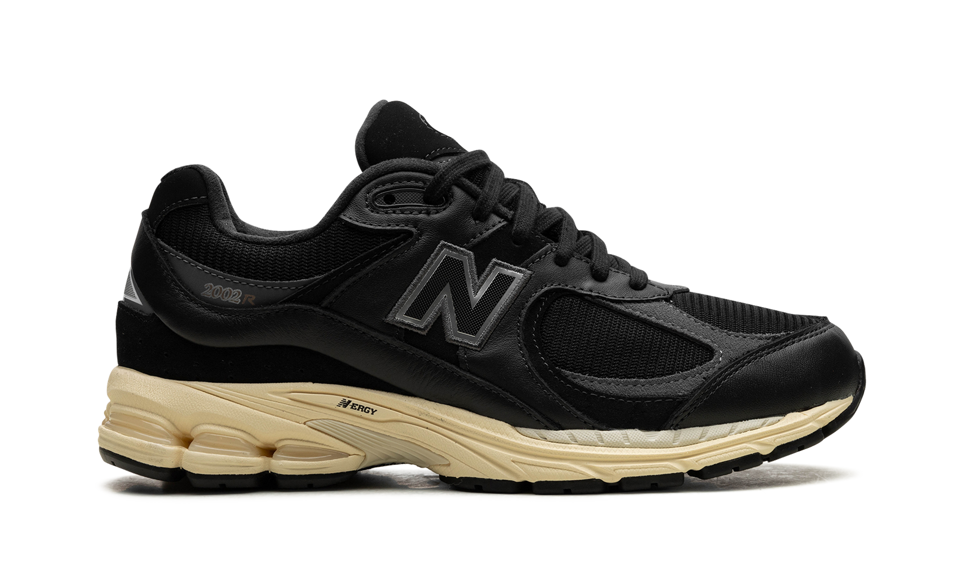 The New Balance 2002R “Vintage Black/Whiteâ€?is a versatile colorway of the retro shoe. Debuted in 2010. the New Balance 2002R was originally a performance running sneaker. and is now one of the brand's most in-demand styles. On the “Vintage Black/Whiteâ€?colorway. the shoe features a Vintage Black mesh base and tonal and grey synthetic overlays. A black “Nâ€?logo appears on the sides. while â€?002Râ€?detailing can be found on the lateral side of the heel. Underfoot. New Balance completes the look of the shoe with a vintage-looking cream N-ergy midsole.