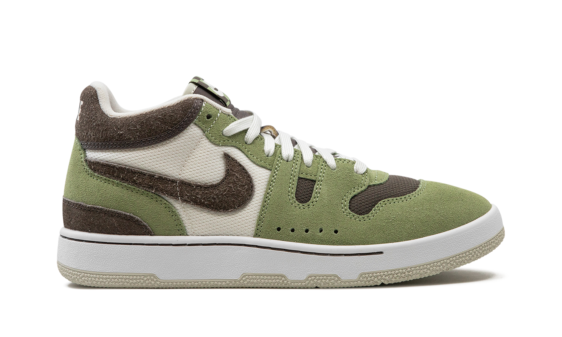 The Nike Mac Attack "Oil Green" is a colorway of the retro tennis shoe with an interesting design. After being worn by tennis legend John McEnroe in the mid-1980s. the Nike Mac Attack returned as a lifestyle shoe in the 2020s. and was used in collaborations with the likes of Travis Scott and Social Status. On the “Oil Green.â€?the shoe features Sail mesh on the sides. and Ironstone-colored mesh on the toe and forefoot. Oil Green suede overlays can be found on the front of the shoe. while brown hairy suede appears on the Swoosh. collar. and heel. A green-and-brown checkerboard print “Nikeâ€?tongue tag completes the look. Release date: March 1. 2024