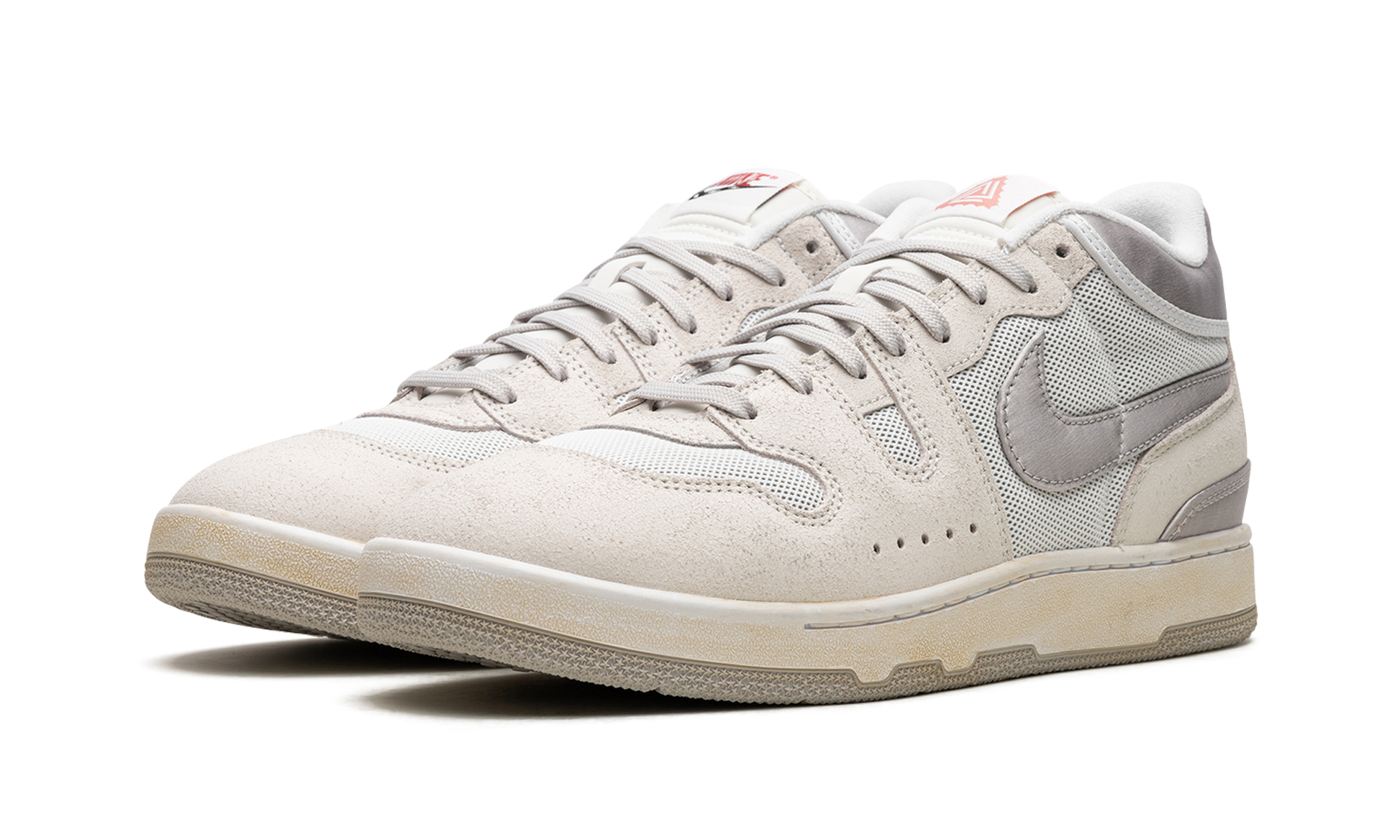 The Social Status x Nike Mac Attack "Silver Linings" is a collaboration by the retailer and Nike on a versatile. vintage-inspired colorway of the classic tennis shoe. The Nike Mac Attack debuted in the mid-1980s and was worn by tennis star John McEnroe before returning as a lifestyle shoe in 2023. Here. Social Status collaborates with Nike to bring a clean and casual look to the model. The shoe features a white mesh construction with tonal leather overlays. The silver satin Swooshes feature a tear-away construction that reveals a pinkish-red suede pattern underneath. “Social Statusâ€?branding is seen on the tongue. heel. and insole. The pre-aged midsole and rubber outsole complete the look. Release date: July 14. 2023