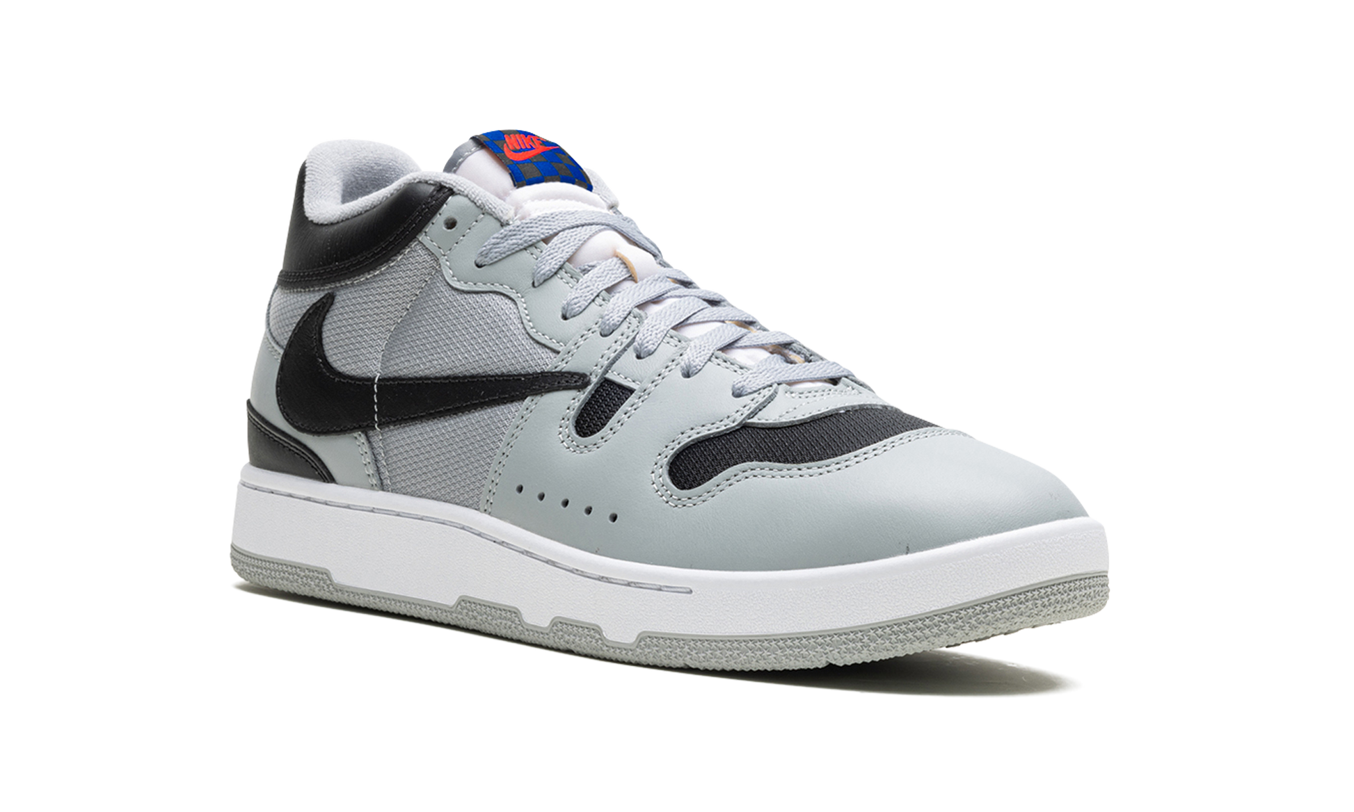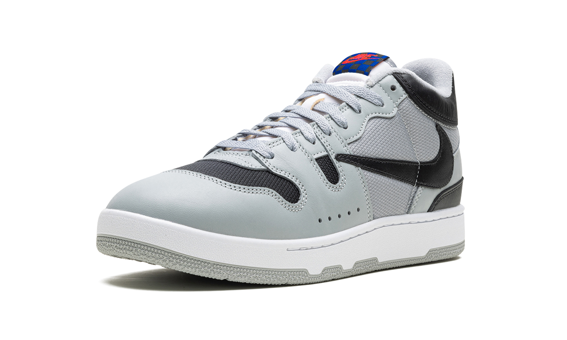 The Travis Scott x Nike Mac Attack is a collaboration by the acclaimed hip-hop artist on the classic tennis and lifestyle sneaker. Originally designed for tennis star John McEnroe in the mid-1980s. the Mac Attack was one of the brand's first tennis sneakers to achieve mainstream success upon its debut. The old school shoe was brought back by Nike in 2023 for the first time as a retro release. Here. Travis Scott adds his signature design aesthetic to the silhouette. giving it a refreshingly modern look. The shoe has a Light Smoke Grey mesh base on the sides with tonal leather overlays. The toe is finished in black mesh to match the color of the backwards leather Swoosh. A black “Cactus Jackâ€?logo is embroidered on the heel below the grey “Nikeâ€?branding on the back of the black leather collar. The shoe's signature checkerboard patterned logo tag appears on the tongue.