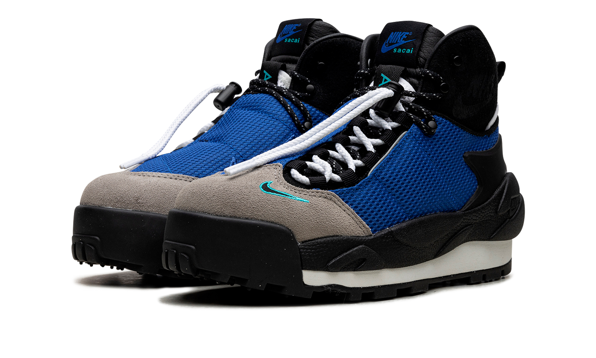 The Sacai x Nike Magmascape "Varsity Royal" is a collaboration between Chitose Abe's clothing brand and Nike on a colorway of the bold sneaker-boot hybrid with blue features. Inspired by the movie “Interstellar.â€?the Sacai x Nike Magmascape combines elements of the Nike Air Footscape and Air Magma to create a unique design. Specifically on the “Varsity Royalâ€?colorway. the shoe features a Varsity Royal mesh construction with Light Zen Grey suede on the toe. An asymmetrical lacing system and a lace toggle on the laces give the shoe a techy outdoors aesthetic. Underfoot. a double-stacked sole and a rugged rubber outsole complete the head-turning design. Release date: December 7. 2023