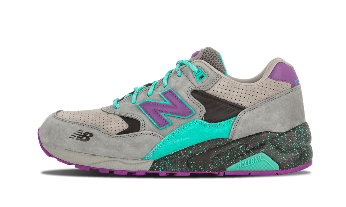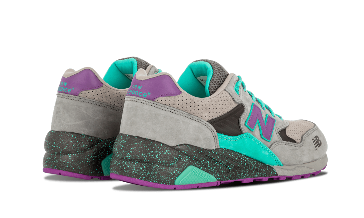 Inspired by the colors of skiing gear. sneaker shop West NYC teamed up with New Balance for this excellent edition of the MT580. The classic trail running shoe is outfitted in premium grey suede with bright accents of purple and teal.