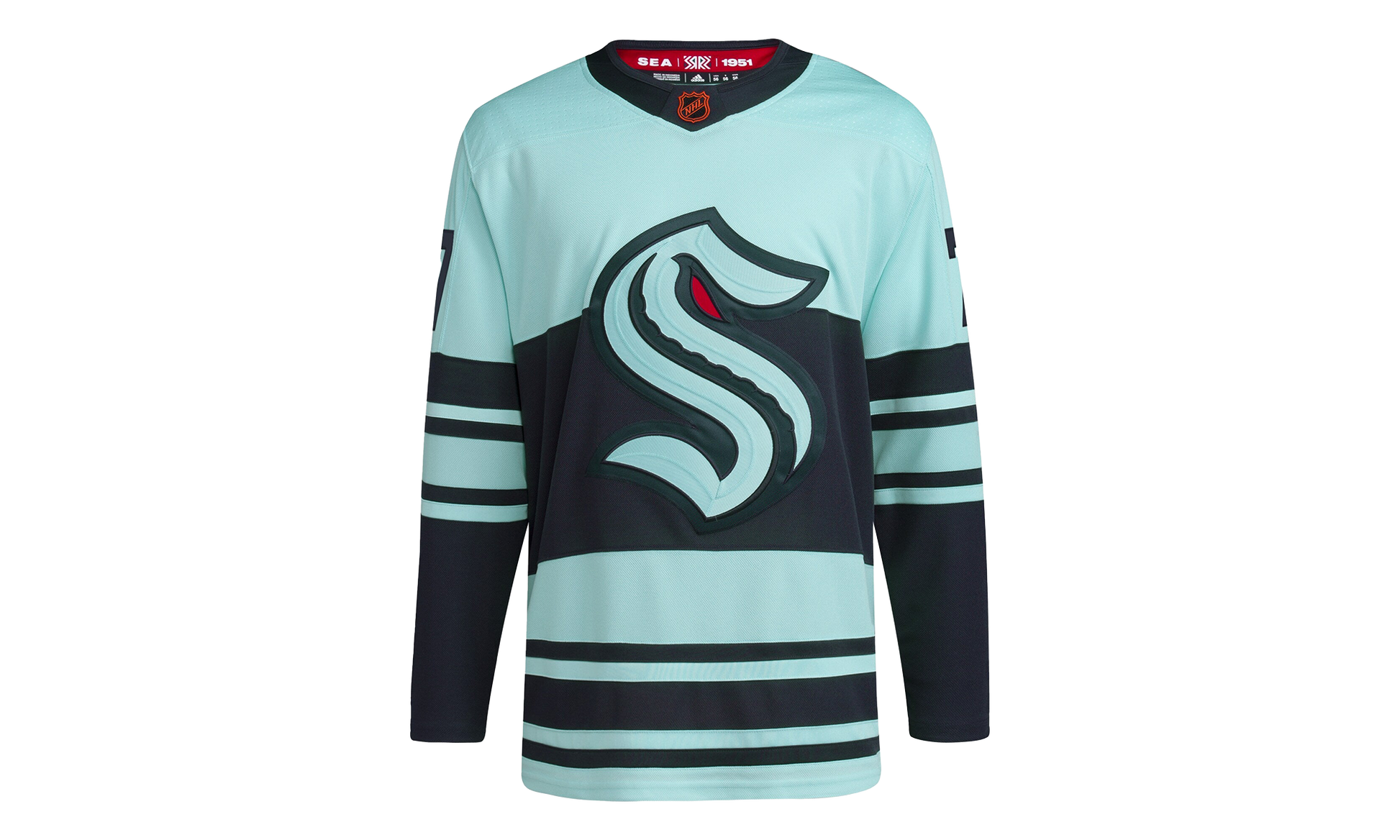 Show your team pride with the Adidas NHL Seattle Kraken Jordan Eberle Authentic Reverse Retro 2.0 Jersey in "Light Blue." This is an official. authentic-level jersey. meaning it features the same quality construction and detailing worn by the players on the ice. The unique "Reverse Retro 2.0" design highlights the team's identity in a vibrant light blue colorway. complete with Jordan Eberle's name and number across the back. A must-have piece of apparel for any dedicated Kraken fan.