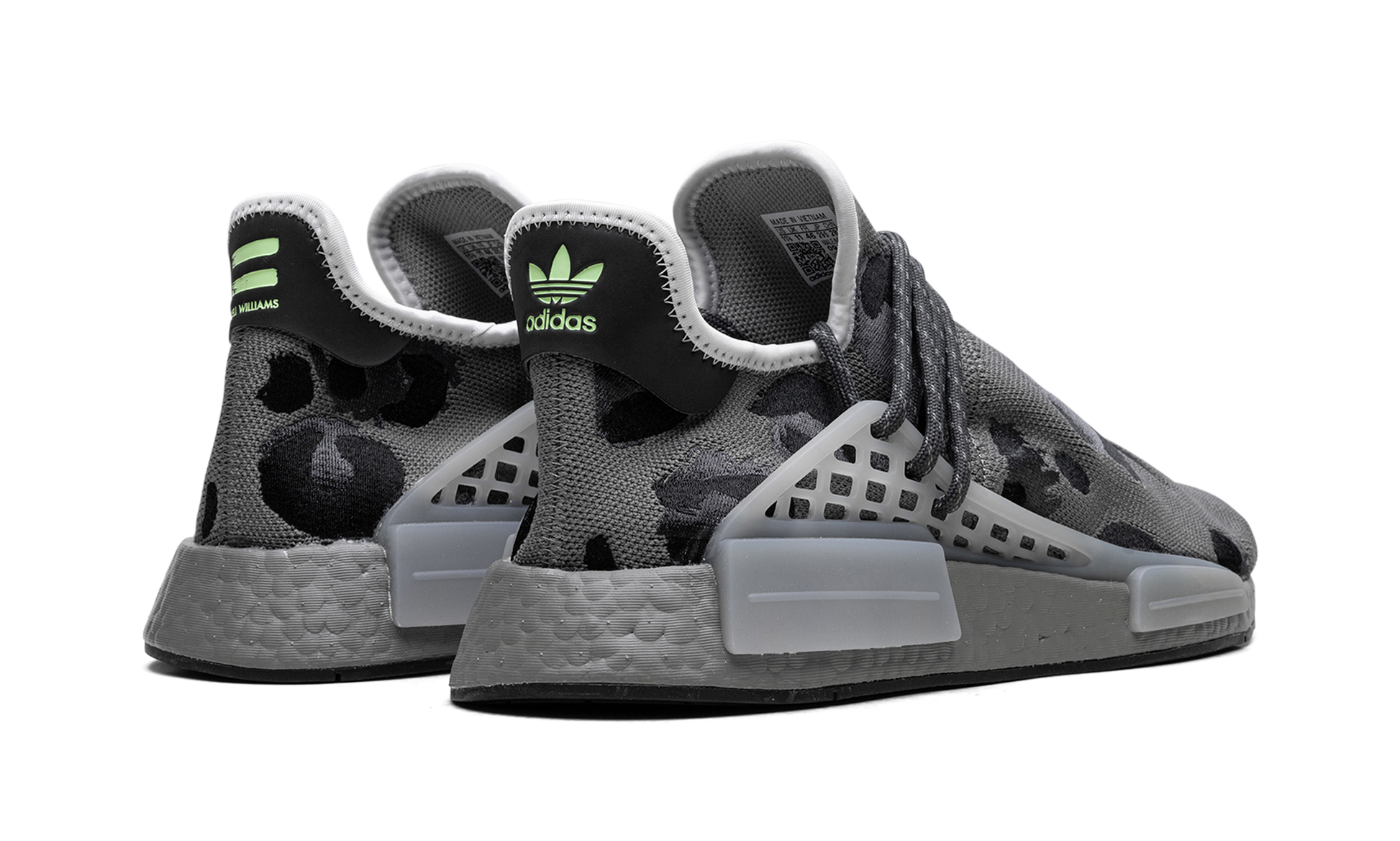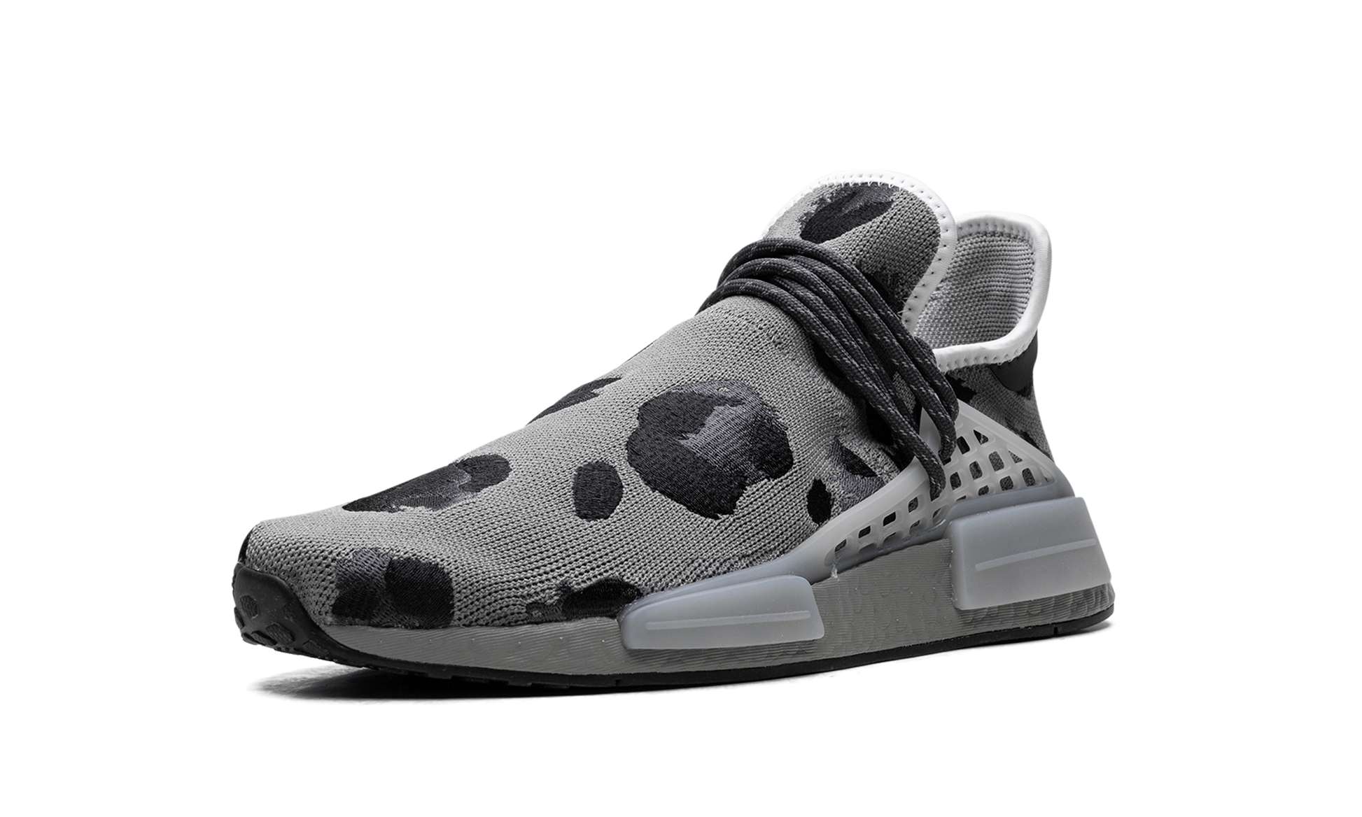 The Pharrell x adidas NMD Hu “Animal Print - Greyâ€?is a neutral colorway of Pharrell's popular signature shoe inspired by nature. The NMD Hu “Animal Printâ€?in the “Greyâ€?design features an eye-catching cheetah print pattern on its grey Primeknit upper. The look is balanced out with tonal rope laces that are integrated into the translucent TPU midfoot “cageâ€?anchored onto the midsole. Dual adidas and Pharrell branding appears on the heel tab. Underfoot. a grey Boost foam midsole provides the wearer with a responsive ride. Release date: November 23. 2022