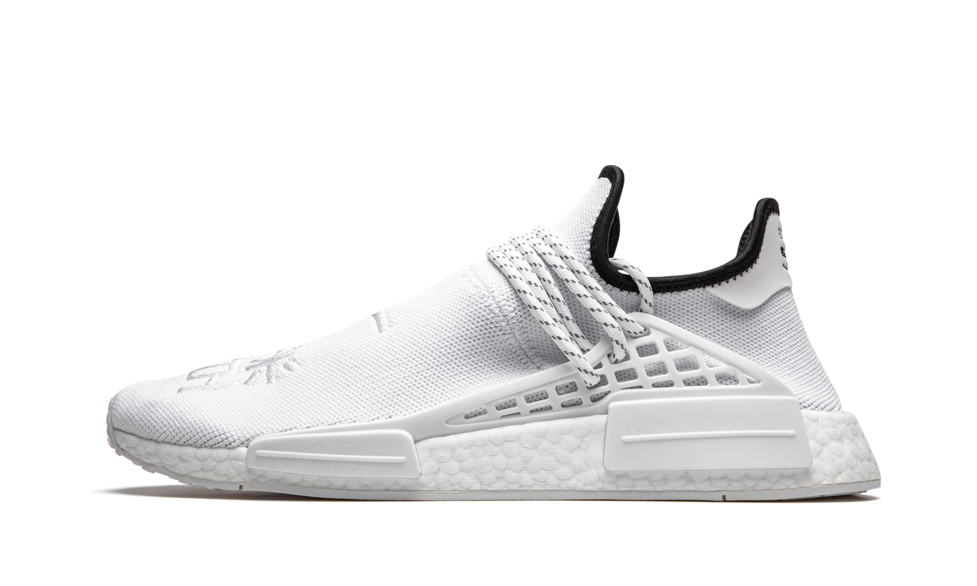 The Pharrell x adidas NMD Hu “Core Whiteâ€?is a November 2020 release from the Virginia based cultural icon and adidas on the former's popular low-top silhouette. The “Core Whiteâ€?is a change of pace for the adidas NMD Hu model as it features a predominantly white monochromatic design. a stark departure from the multicolor styles that dominated the model's early product cycle. No less covetable. the “Core Whiteâ€?colorway displays a wearable look for those who appreciate a clean shoe that can be worn with virtually anything it's paired with. Adidas outfits the shoe in a crisp white Primeknit material and places traditional Chinese symbols on the top of the shoe. The speckled white rope laces are held in place by a supportive TPU caging system anchored by midsole inserts. Additional styling includes a black liner and dual adidas and Human Race branding on the heel. Underfoot. Boost cushioning provides a comfortable and responsive ride for the wearer. Release date: November 25. 2020.