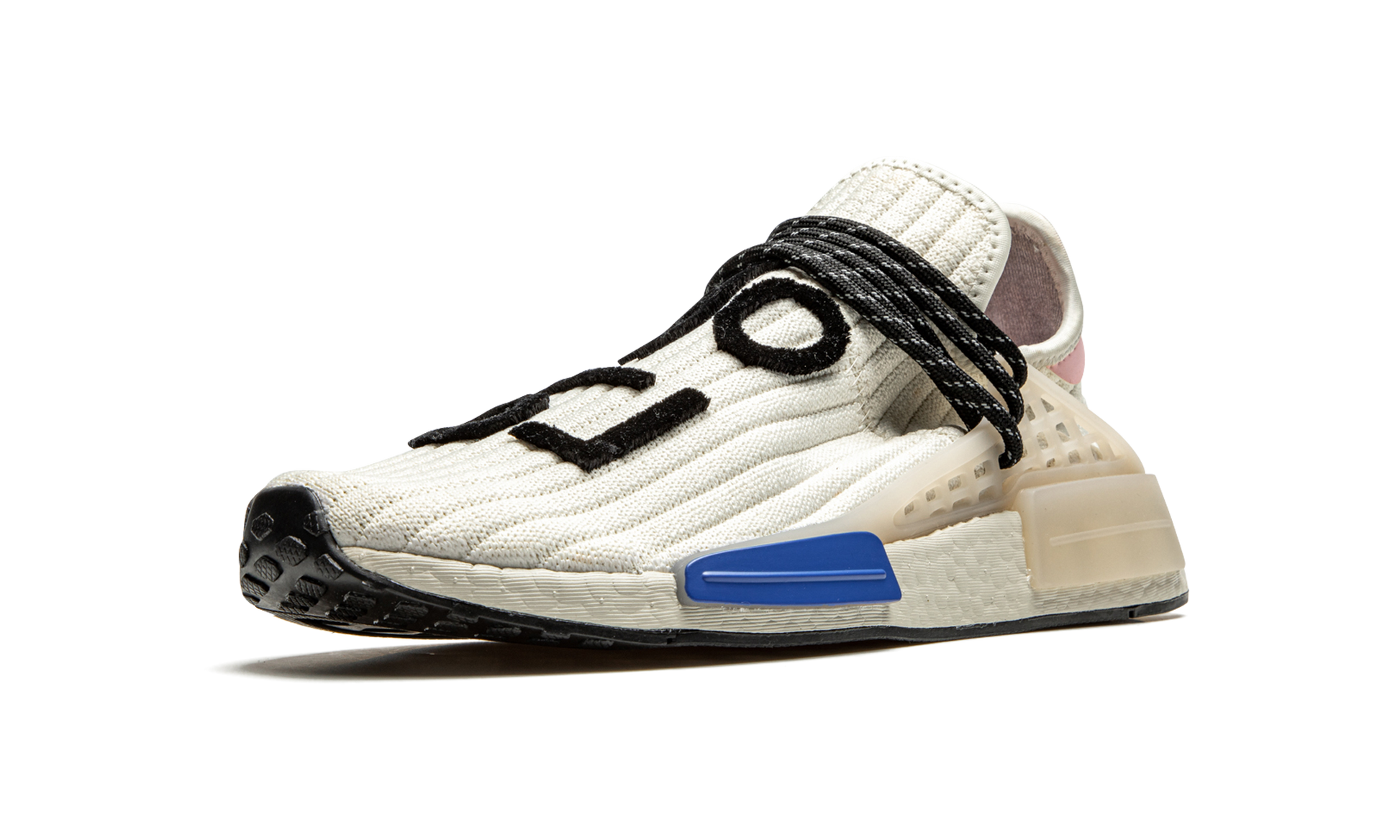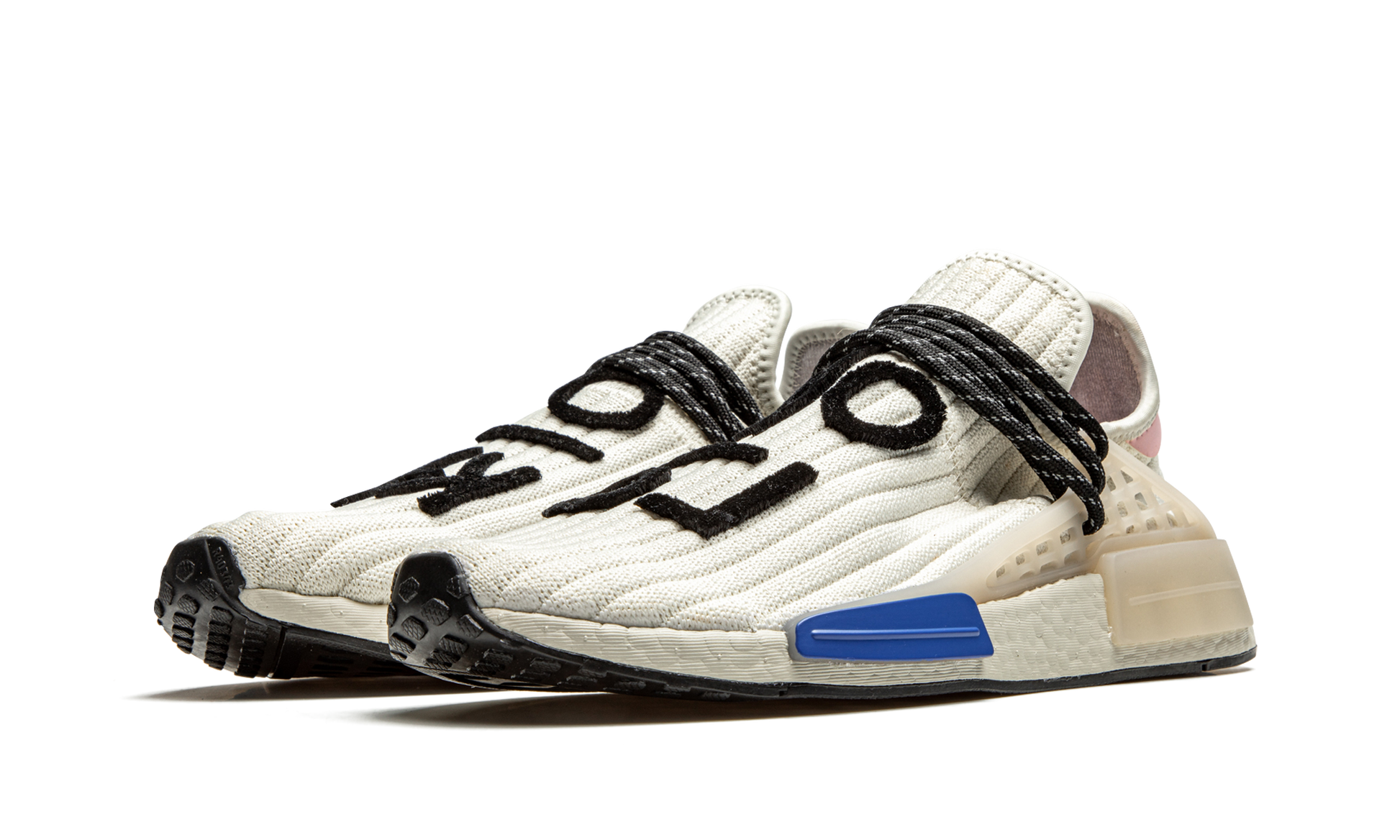 The Pharrell x adidas NMD Hu “Creamâ€?is a February 2021 release of the music artist's beloved low-top shoe with a reimagined knit based construction. A cream ribbed knit upper replaces the Primeknit fabric found on earlier NMD Hu releases. The sweater-like material is contrasted by a pink leather heel tab with adidas and Pharrell branding. Reflective black speckled rope laces give the colorway an element of ruggedness. Black felt “Human Raceâ€?detailing in Korean is stitched onto the top of the shoe. The previously mentioned rope laces are held in place by a semi-translucent TPU caging system that is anchored by midsole inserts. A white Boost foam midsole finishes off the look of this premium offering from Pharrell Williams and adidas. Release date: February 5. 2021.