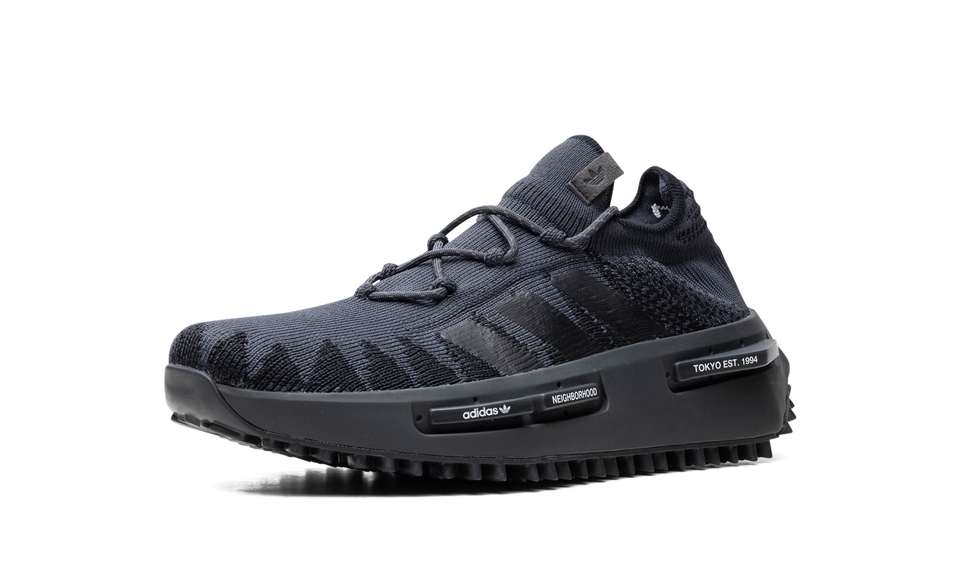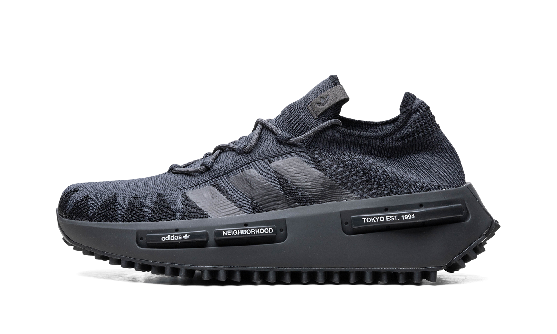 The NEIGHBORHOOD x adidas NMD S1 "Knit Black" is a collaboration by the Japanese label and adidas on the future-forward sneaker. Inspired by punk culture and aesthetics. the NEIGHBORHOOD x adidas NMD S1 has a mostly monochromatic appearance that excels in versatility. The upper features a breathable Primeknit construction with tonal black Three Stripes branding on the sides. In spite of the shoe's sock-like design. a traditional lacing system appears on top of the shoe. “Adidas.â€?“NEIGHBORHOOD.â€?and “Tokyo Est. 1994â€?branding can be found on the inserts on the midsole. Adidas's Boost cushioning is embedded in the midsole and provides all-day comfort. Release date: November 11. 2023
