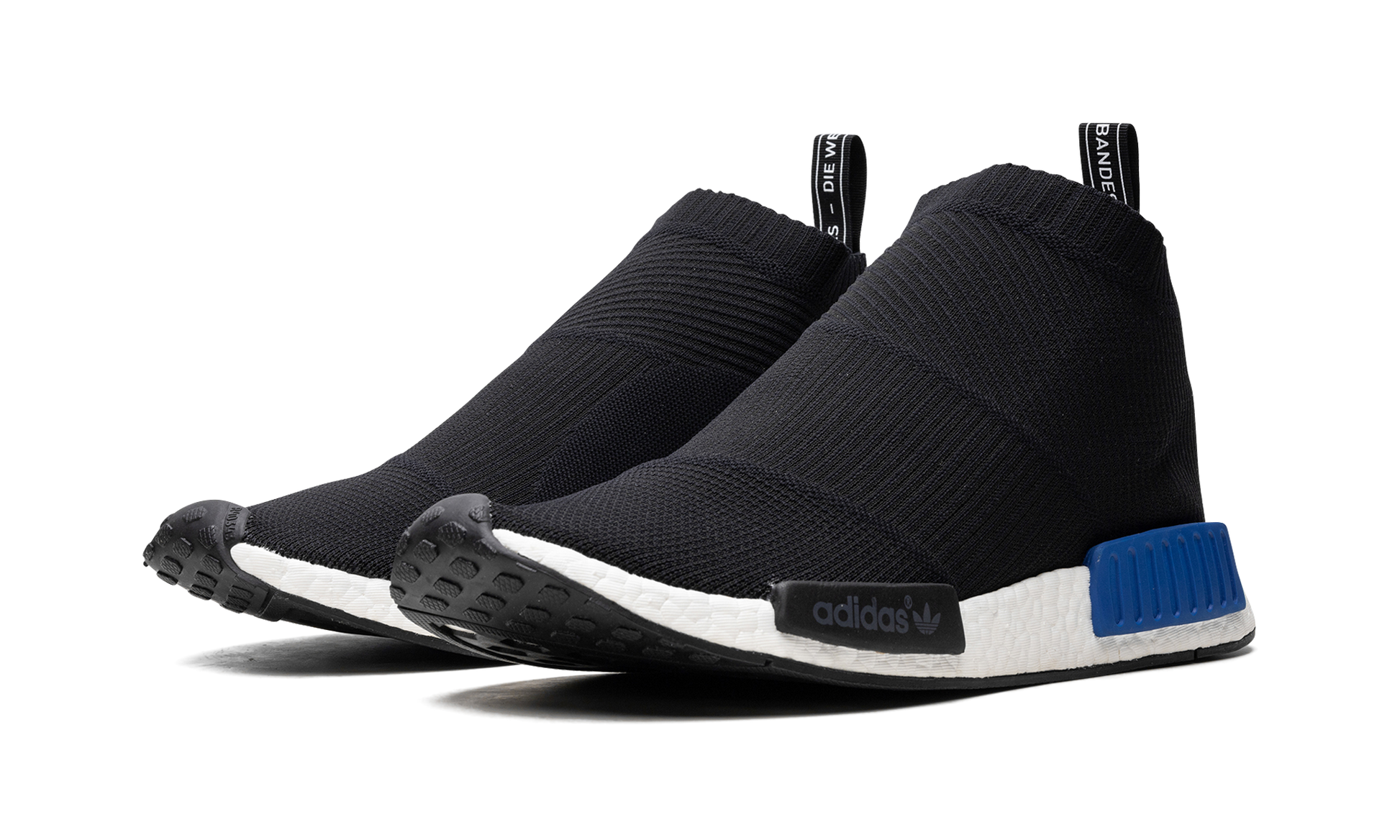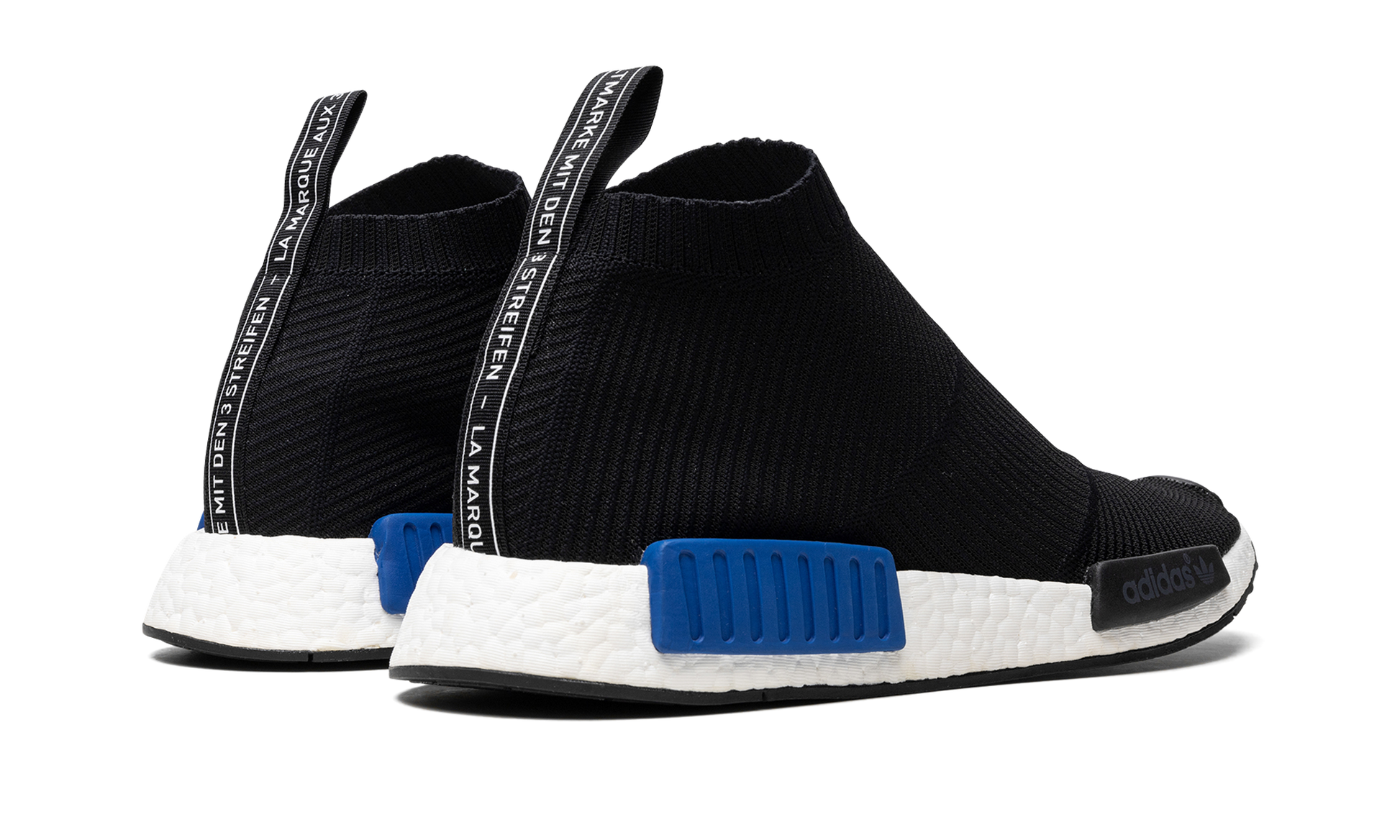 The City Sock iteration of the popular adidas NMD is up for grabs here in its all-black Primeknit upper with bright blue contrast for the rear midsole inserts.