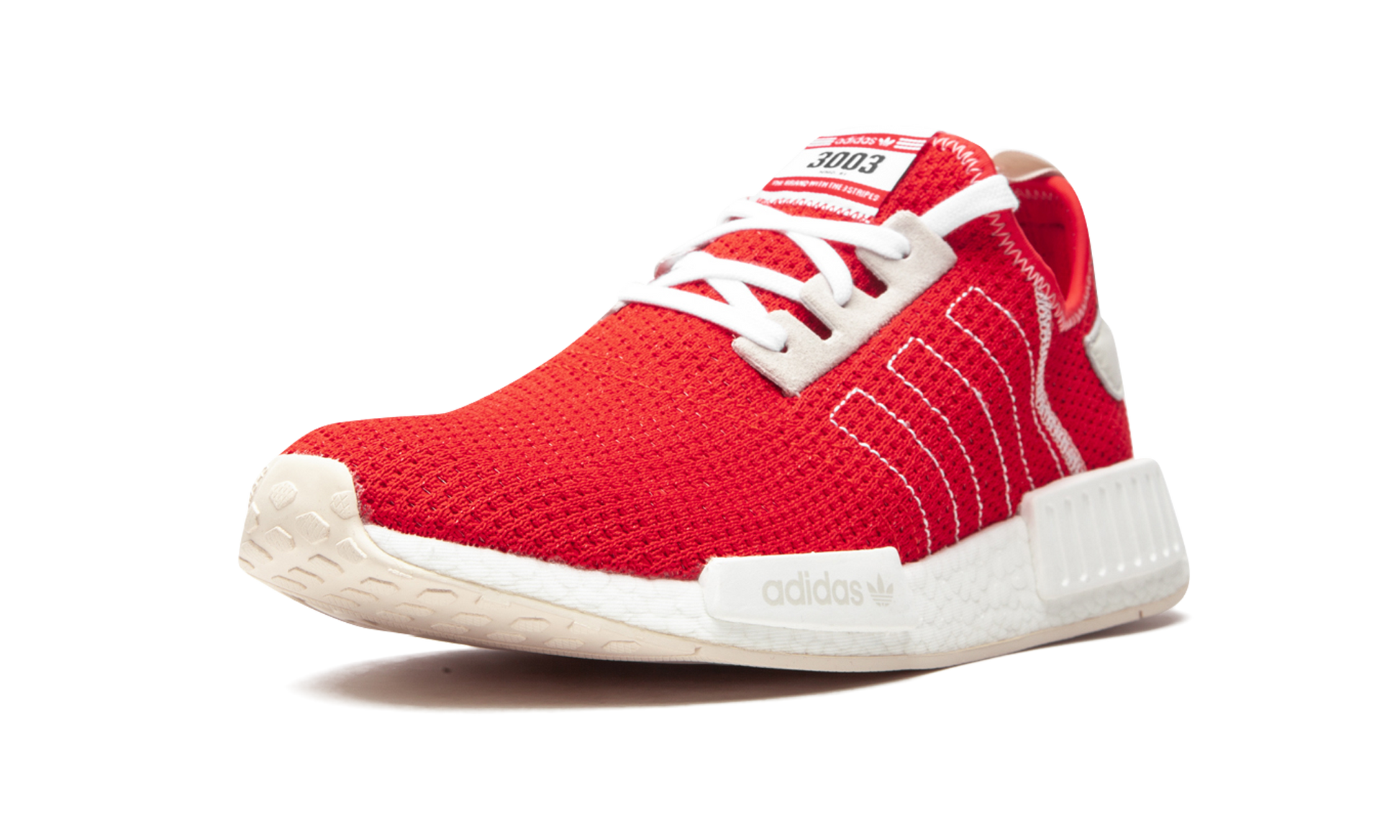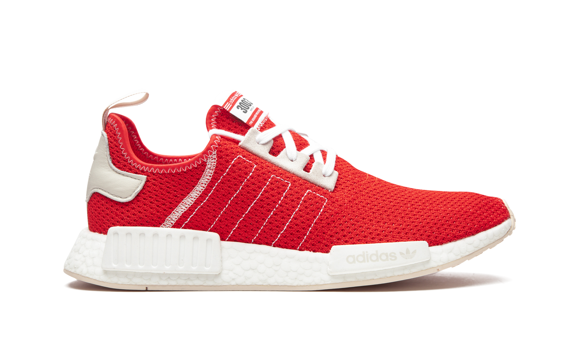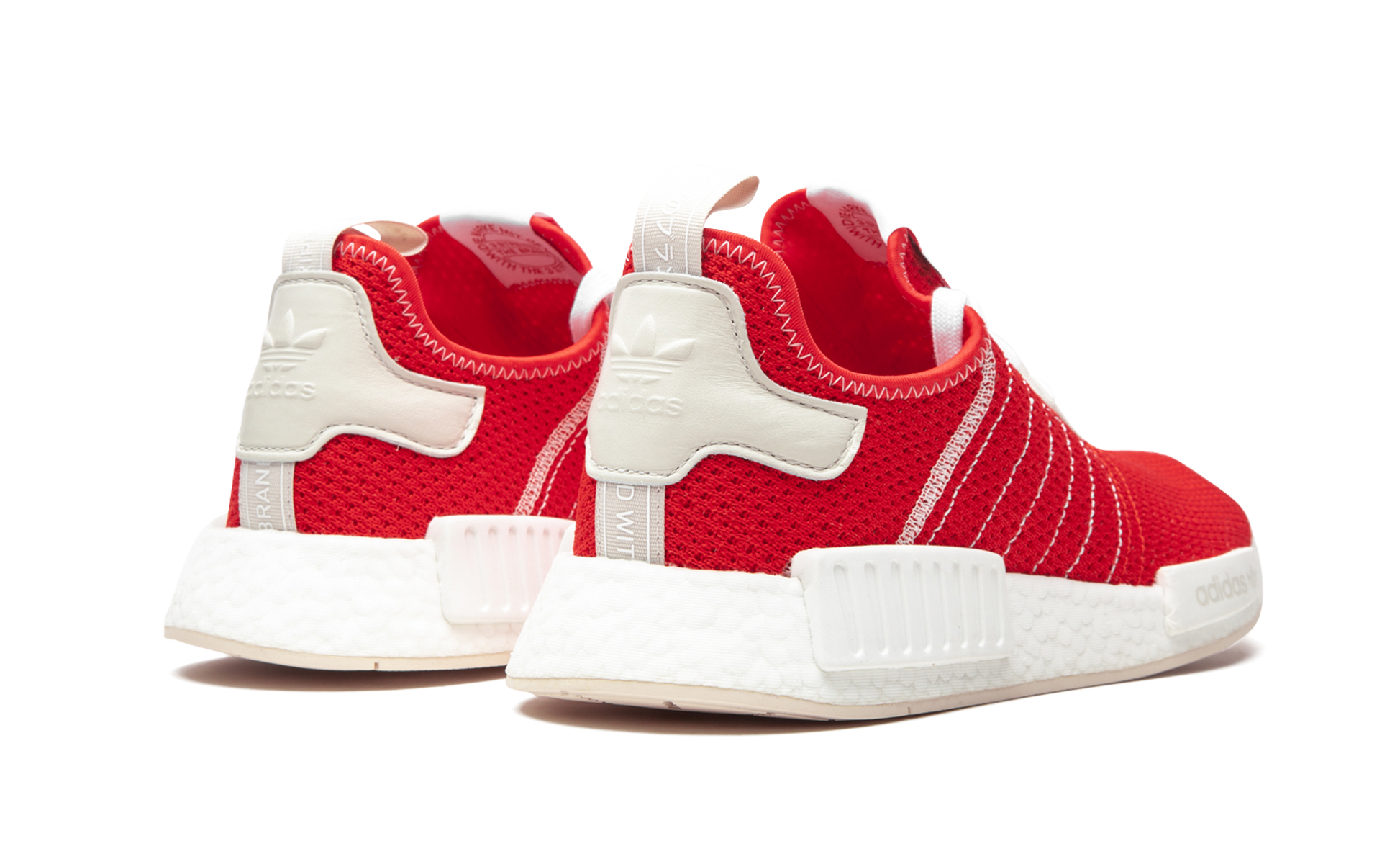 The adidas NMD R1 in Active Red and Ecru Tint is a vibrant low-top lifestyle sneaker that will liven up anybody's closet. The NMD model ranks among the more popular of the knit-based adidas offerings. as its sporty vibe transitions well from season-to-season. Here. the adidas NMD R1 dons a lively Active Red knit base with outlined Three Stripes branding on the mid-panel and contrast white stitching on the lateral panel and collar. Light grey Ecru Tint suede eyelets breaks up the red base. as does the light grey leather heel patch with embroidered adidas branding layered on top. Adidas' beloved white Boost sole �complete with grey EVA notches �finishes off the look.