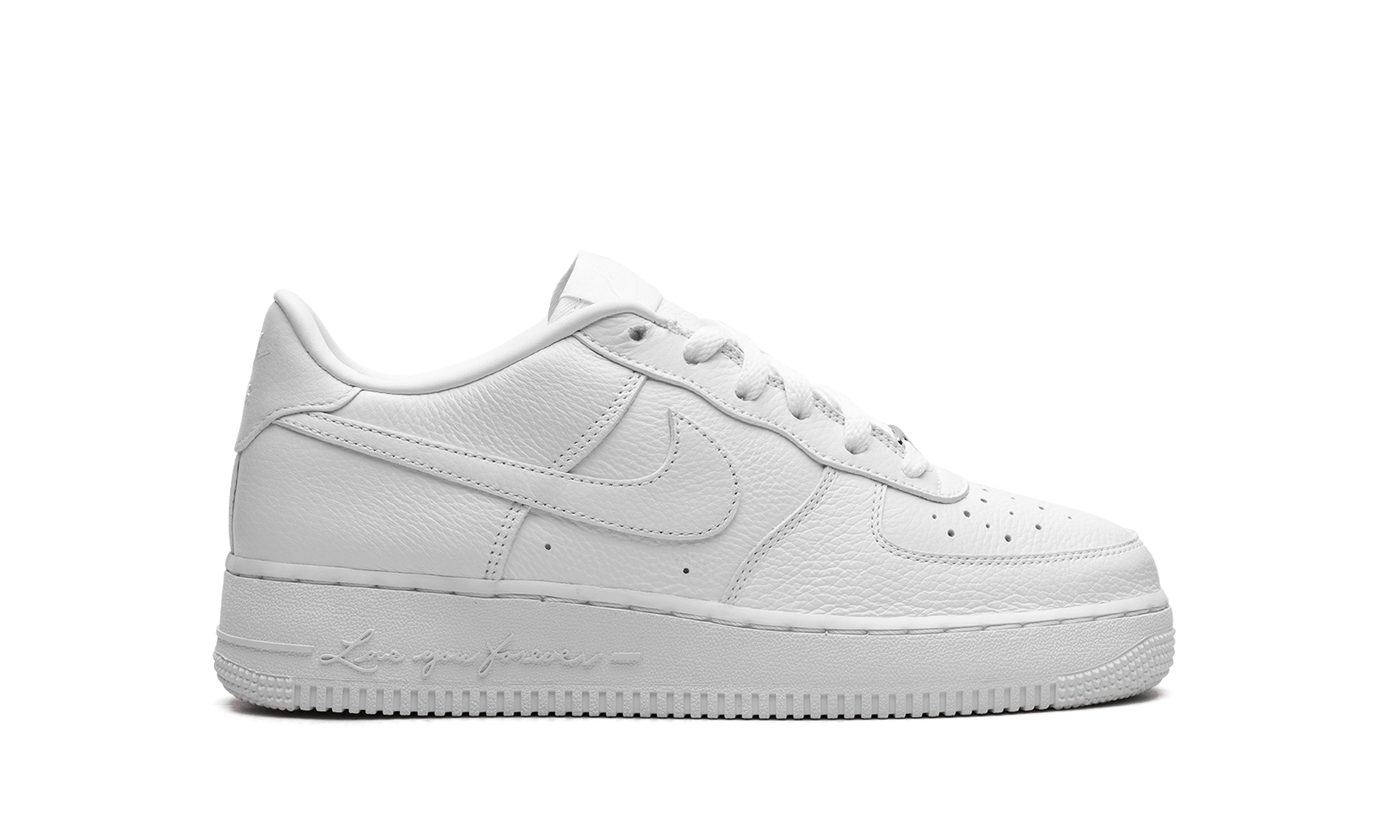 The Drake x Nike Air Force 1 Low GS "NOCTA - Love You Forever" is the youth sizing of the collaboration by the hip-hop star and Nike on the vintage basketball shoe in a colorway inspired by Drake's “Certified Lover Boyâ€?studio album. This colossal collaboration between Drake and Nike was rumored to be canceled at one point in time. but as it turns out. that was merely speculation as the pair's Air Force 1 was released at retail in 2023. The shoe features an all-white tumbled leather upper that is reminiscent of the model's “White on Whiteâ€?colorway. Dual “Noctaâ€?and “Nike Airâ€?branding is embroidered on the heel of the left and right shoe. respectively. Drake's “Certified Lover Boyâ€?branding replaces the Air Force 1's signature “Airâ€?insignia on the lateral side of the white rubber midsole.