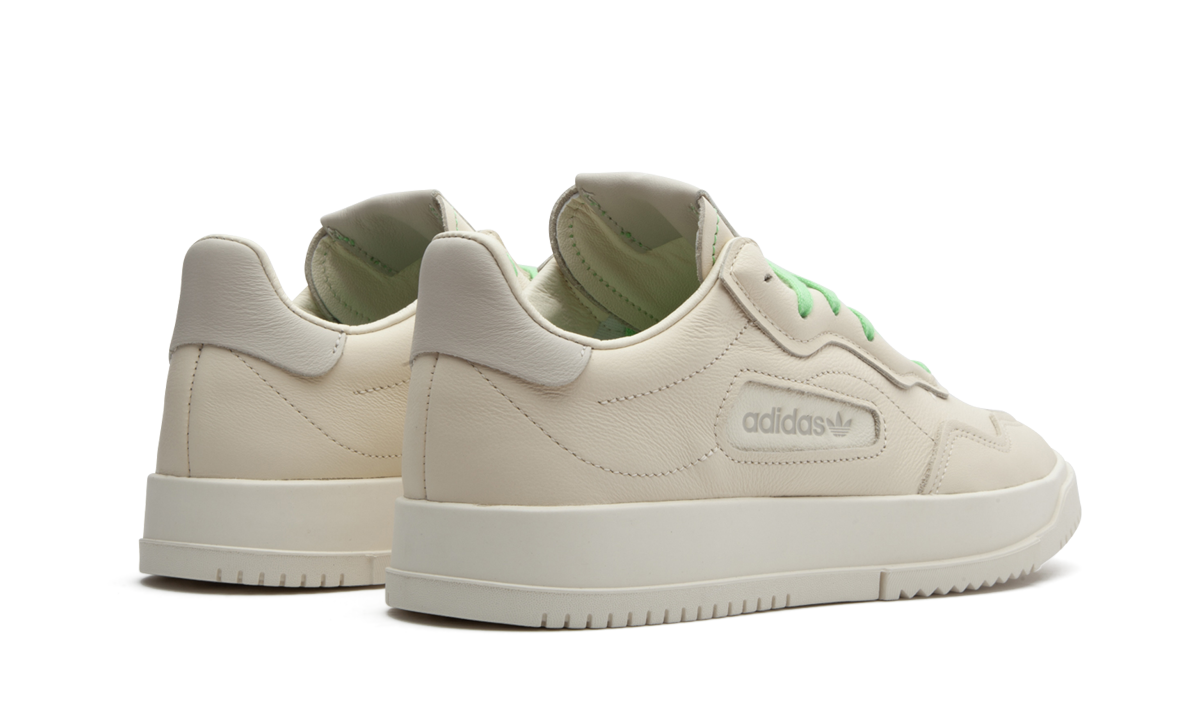 The Pharrell Williams x adidas SC Premiere is one of several versatile footwear styles reworked by the Virginia artist as part of adidas's “March Madnessâ€?collection. A classic performance tennis shoe in its heyday. the SC Premiere is now a full-time lifestyle staple worn by stylish people around the world. The entire upper is finished off in a pinkish-tan leather hue that is effectively called “Ecru Tinkâ€?by adidas. A tonal adidas branding window marks the mid-panel. while bold neon green laces provide a healthy burst of color against the neutral color of the tongue. “Huâ€?embroidery on the tongue and a contrasting tan leather overlay on the heel tab finish off the look. The Pharrell Williams x adidas SC Premiere was released in March 2020.