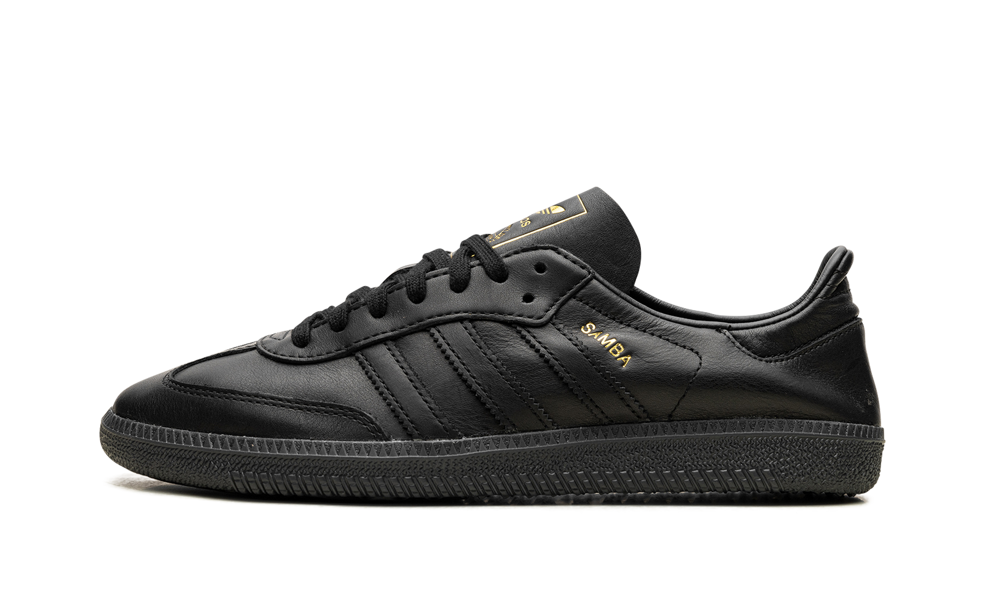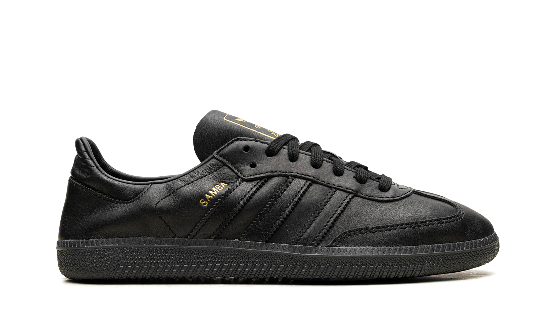 The adidas Samba Decon “Black/Gold Metallicâ€?is a slightly modified version of the retro shoe in a black-based design. The adidas Samba Decon is a stripped-back version of the popular footwear style that has a more streamlined silhouette. On this colorway. the shoe features a black leather upper with tonal leather Three Stripes branding on the sides. A Gold Metallic “Sambaâ€?logo appears on the lateral side of the profile. matching the gold “adidasâ€?branding on the thin leather tongue. A textured black rubber sole completes the look.