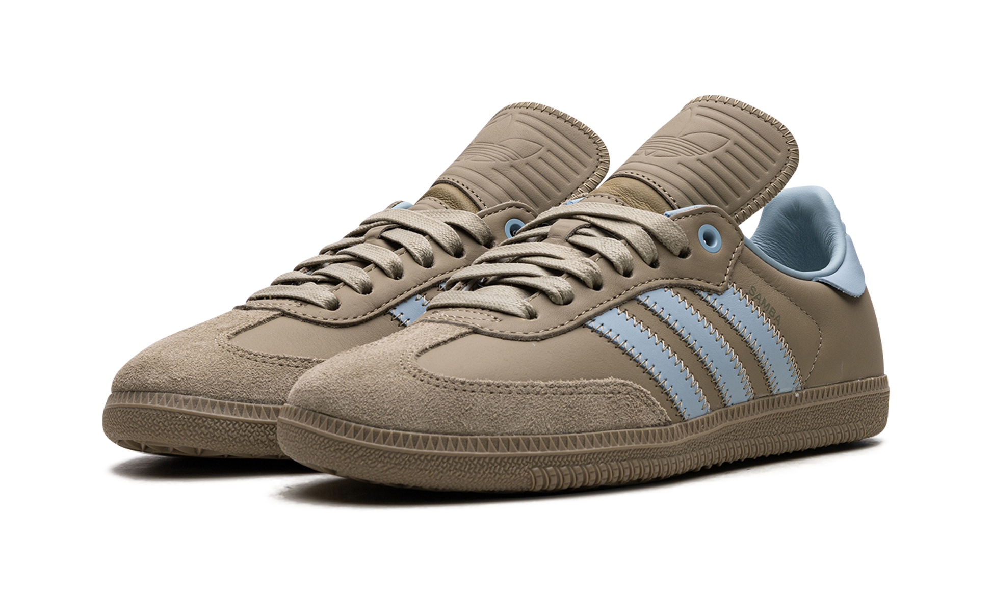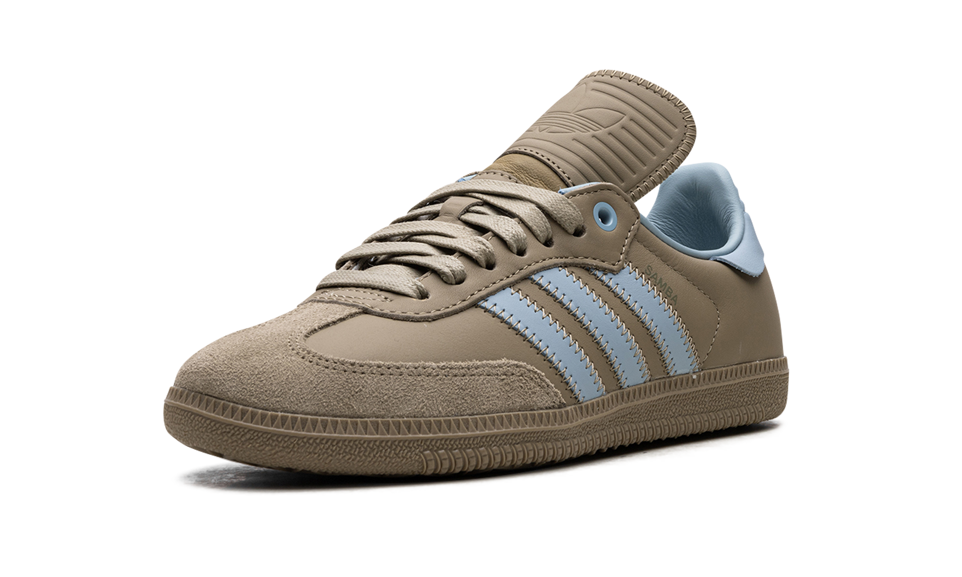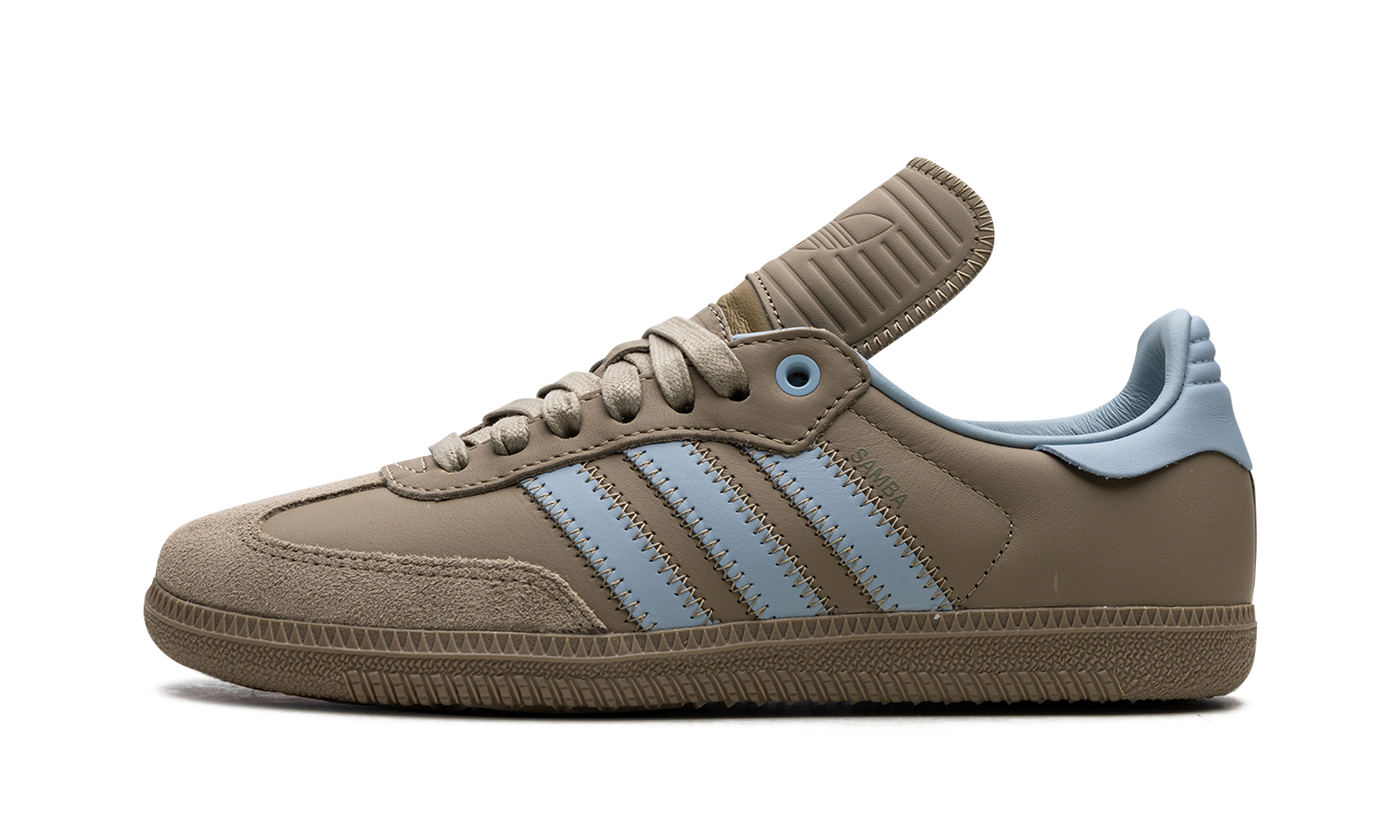 The Pharrell x adidas Samba Humanrace "Orbit Green" is a collaboration by Pharrell's lifestyle brand and adidas on an earth tone colorway of the retro soccer shoe. From a Fall 2023 collection between Humanrace's collaboration with adidas. the “Orbit Greenâ€?version of the Samba Humanrace features an muted olive green leather upper that has a tonal suede overlay on the toe. Contrasting light blue “Three Stripesâ€?branding is seen on either side of the shoe. More blue accenting can be seen on the leather heel tab on the back. Underfoot. an Orbit Green-colored rubber sole completes the look. Release date: November 3. 2023