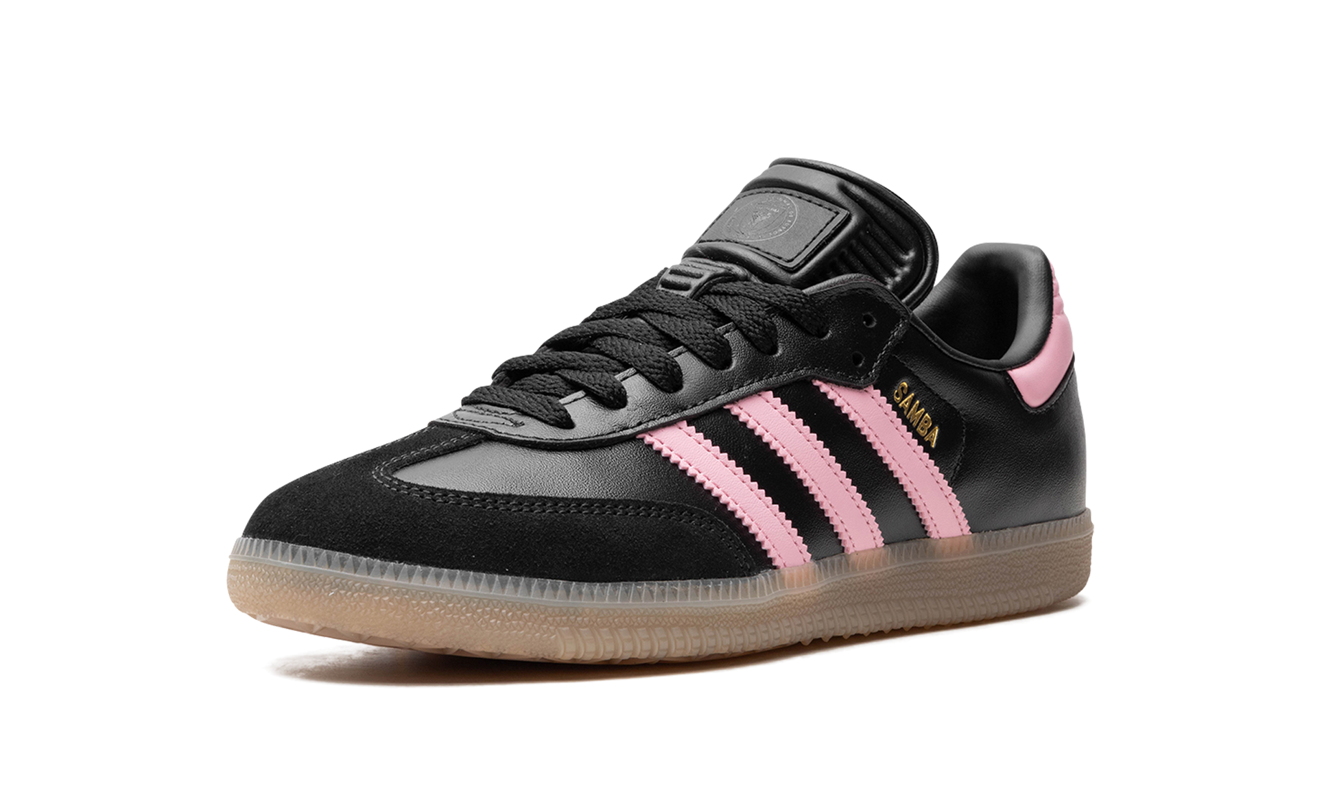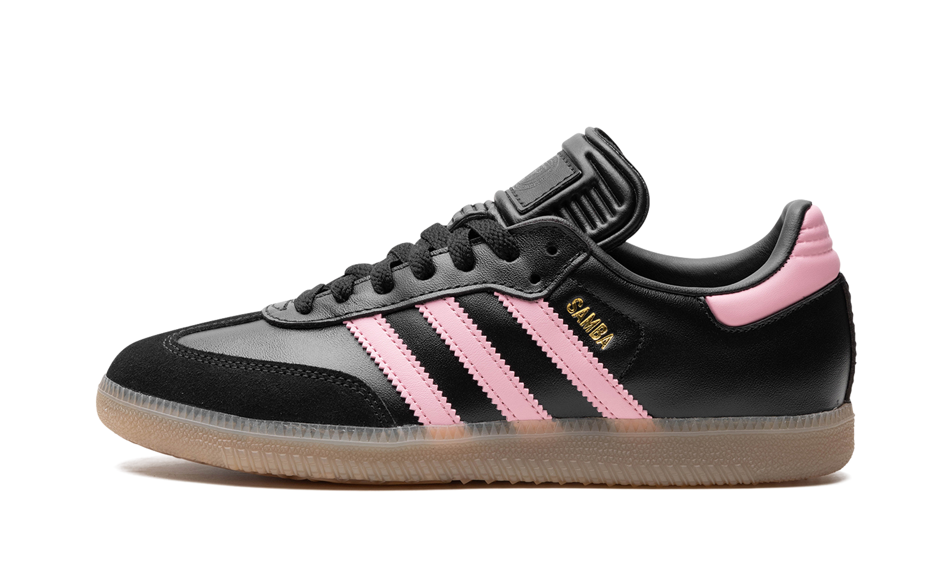The adidas Samba OG “Inter Miami - Blackâ€?is a colorway of the popular retro shoe inspired by the Major League Soccer team. Also said to be inspired by Inter Miami's star player. football (soccer) legend Lionel Messi. the “Inter Miamiâ€?features the colors of the Miami-based team on its design. The upper has a black leather construction with pink leather Three Stripes branding. A gold “Sambaâ€?logo appears on the lateral side of the mid-panel. while detailing inspired by Inter Miami is located on the tongue. A semi-translucent. smoky Gum rubber sole completes the look.