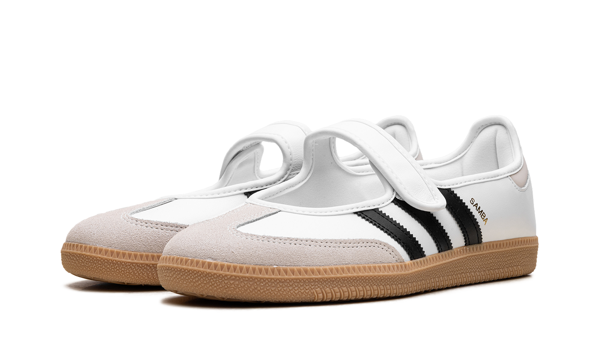 Introducing the SAMBA JANE in WHITE BLACK GUM. a versatile and stylish addition to your footwear collection. These sneakers offer a timeless design with a clean white upper. classic black accents. and a distinctive gum sole for a touch of retro flair. Perfect for everyday wear. the SAMBA JANE combines comfort and iconic style.