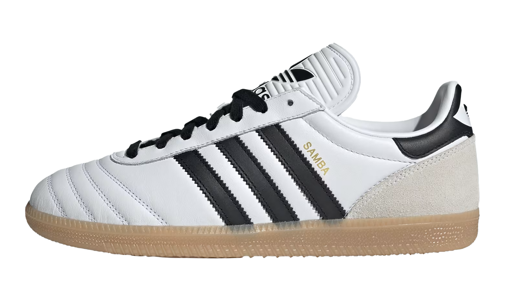 Own a piece of history with a fresh twist in the adidas Samba JP "Cloud White/Black/Gum". This Japan-exclusive take on the iconic indoor soccer shoe reloads its legacy with bold. refined details. It features a crisp Cloud White leather upper with an updated quilted vamp for texture. an extended tongue for retro flair. and classic Black serrated Three-Stripes. A gum rubber outsole keeps the low-profile look grounded and street-ready. It's a clean. elevated edition of a forever-classic.
