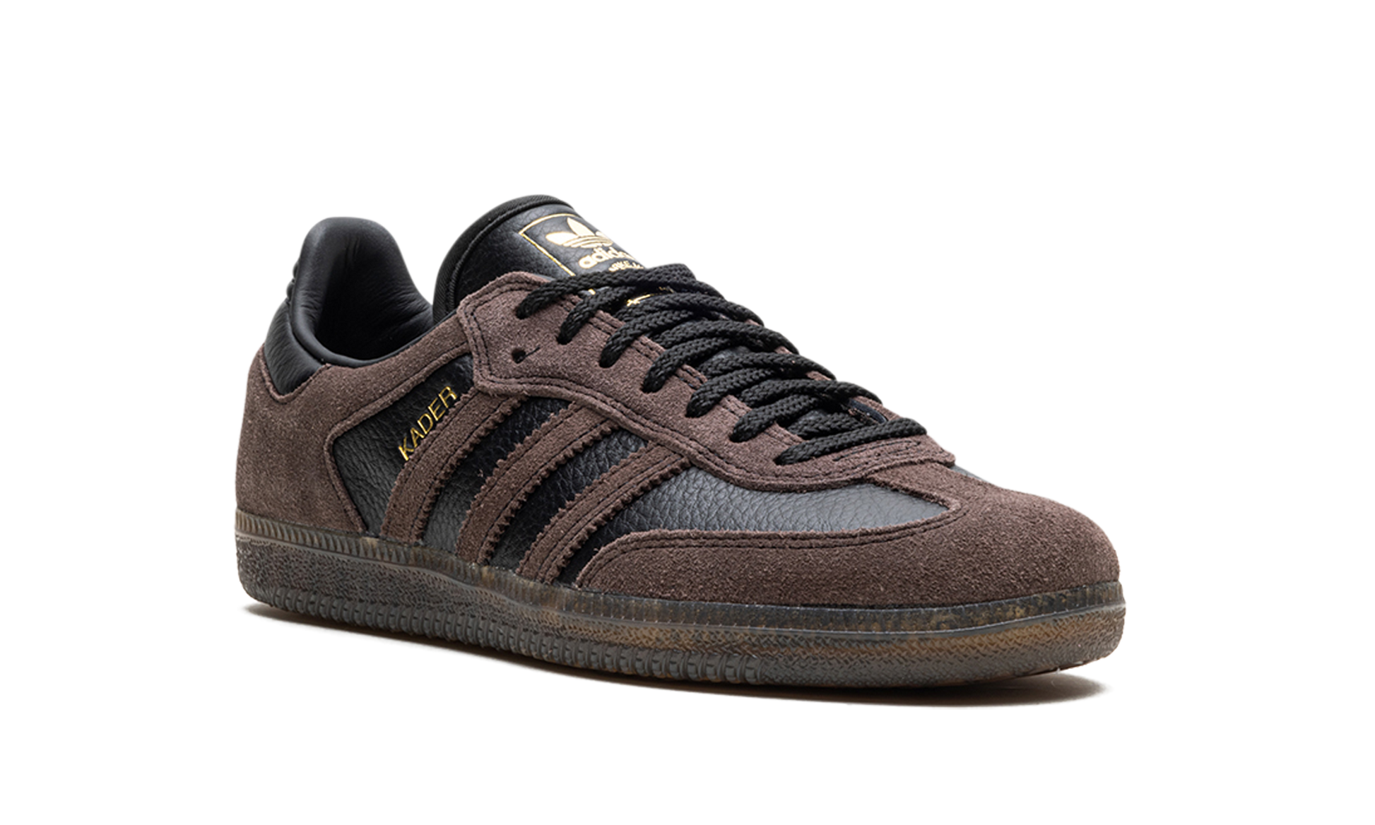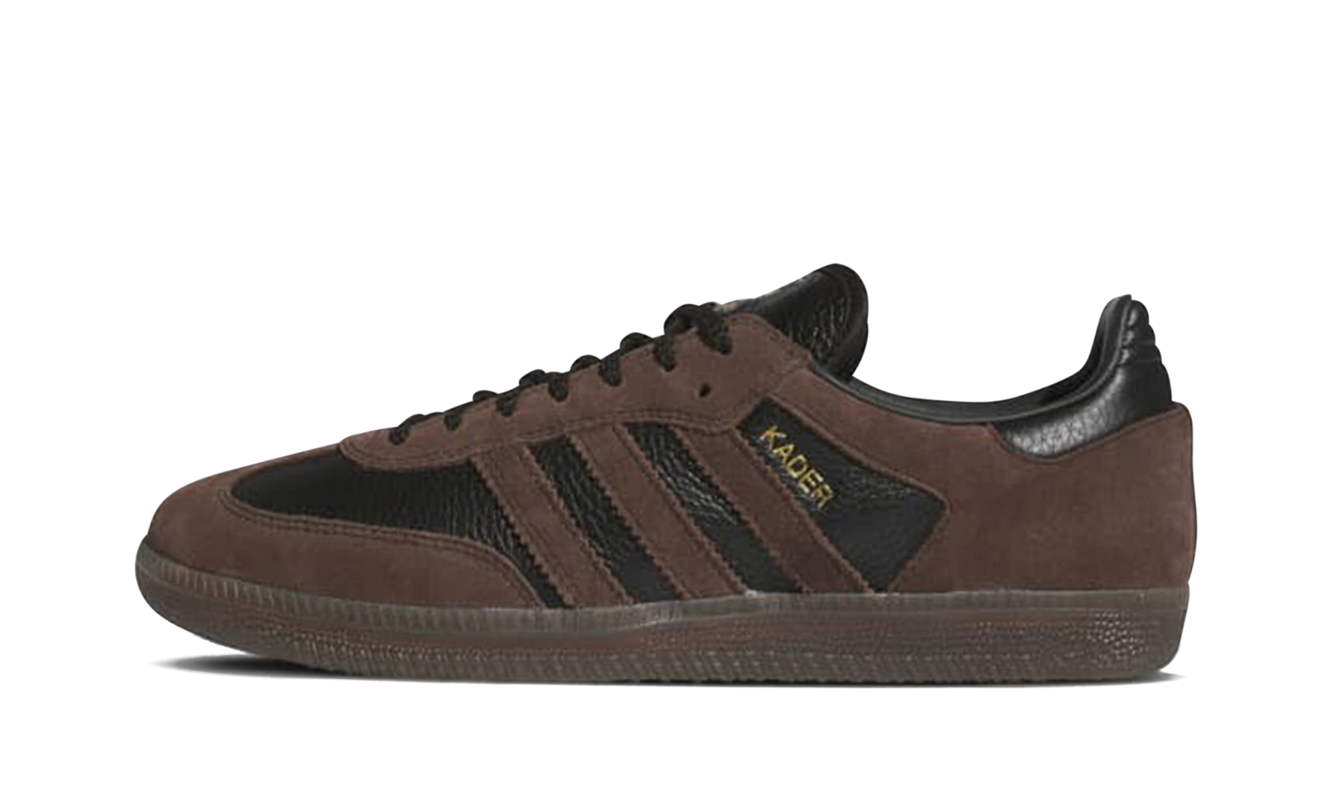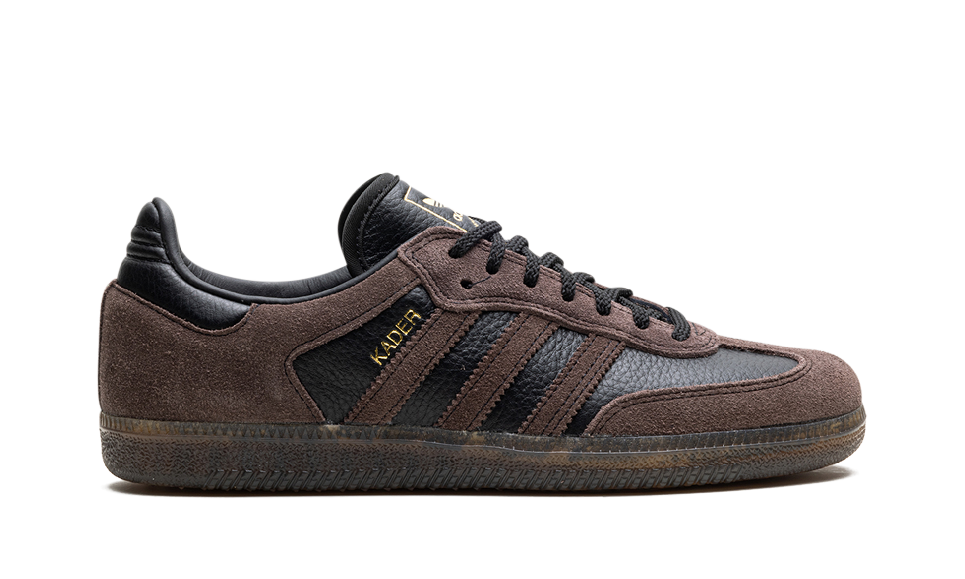 The adidas Samba ADV "Kader Sylla" is a collaboration between the professional skateboarder and adidas on a skate-ready version of the retro shoe. Modified specifically for skateboarding. the Samba ADV for Kader features a black tumbled leather base with brown suede overlays on the forefoot and heel. as well as on the Three Stripes branding. A “Kaderâ€?logo appears in gold foil next to the Three Stripes on the lateral side of the shoe. Underfoot. the gum rubber sole provides traction for optimal board feel or casual daily wear. Release date: February 10. 2024