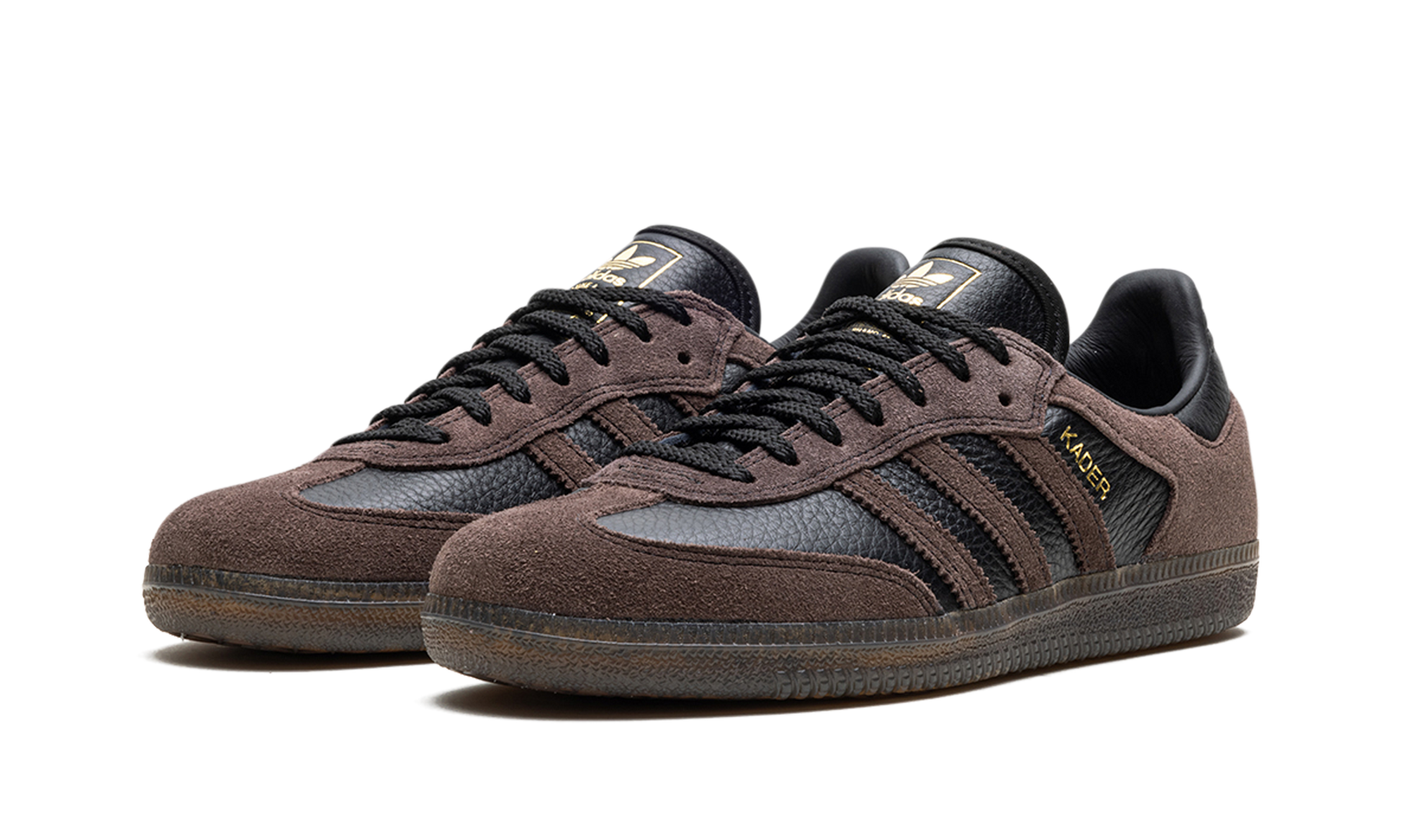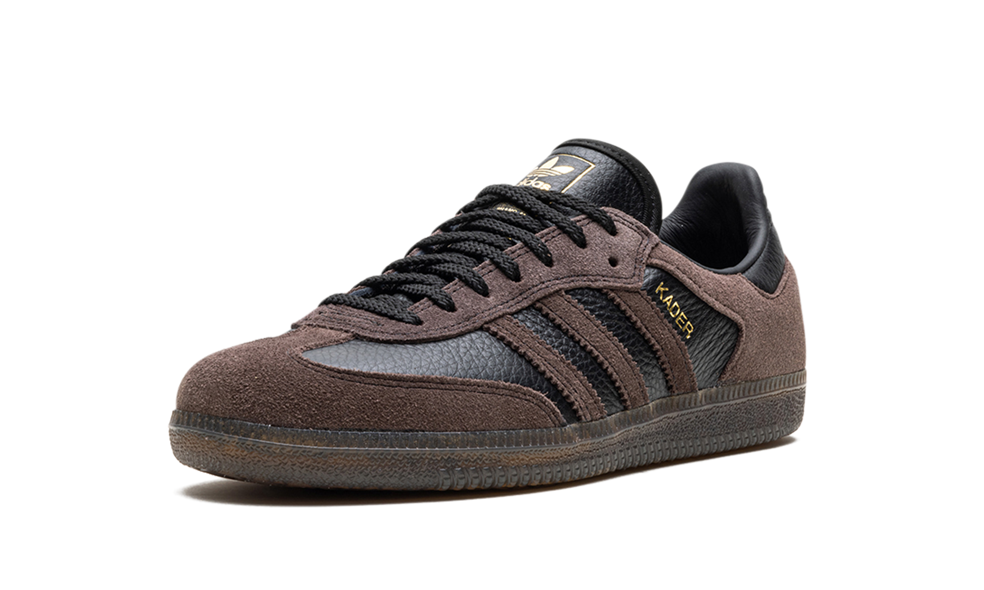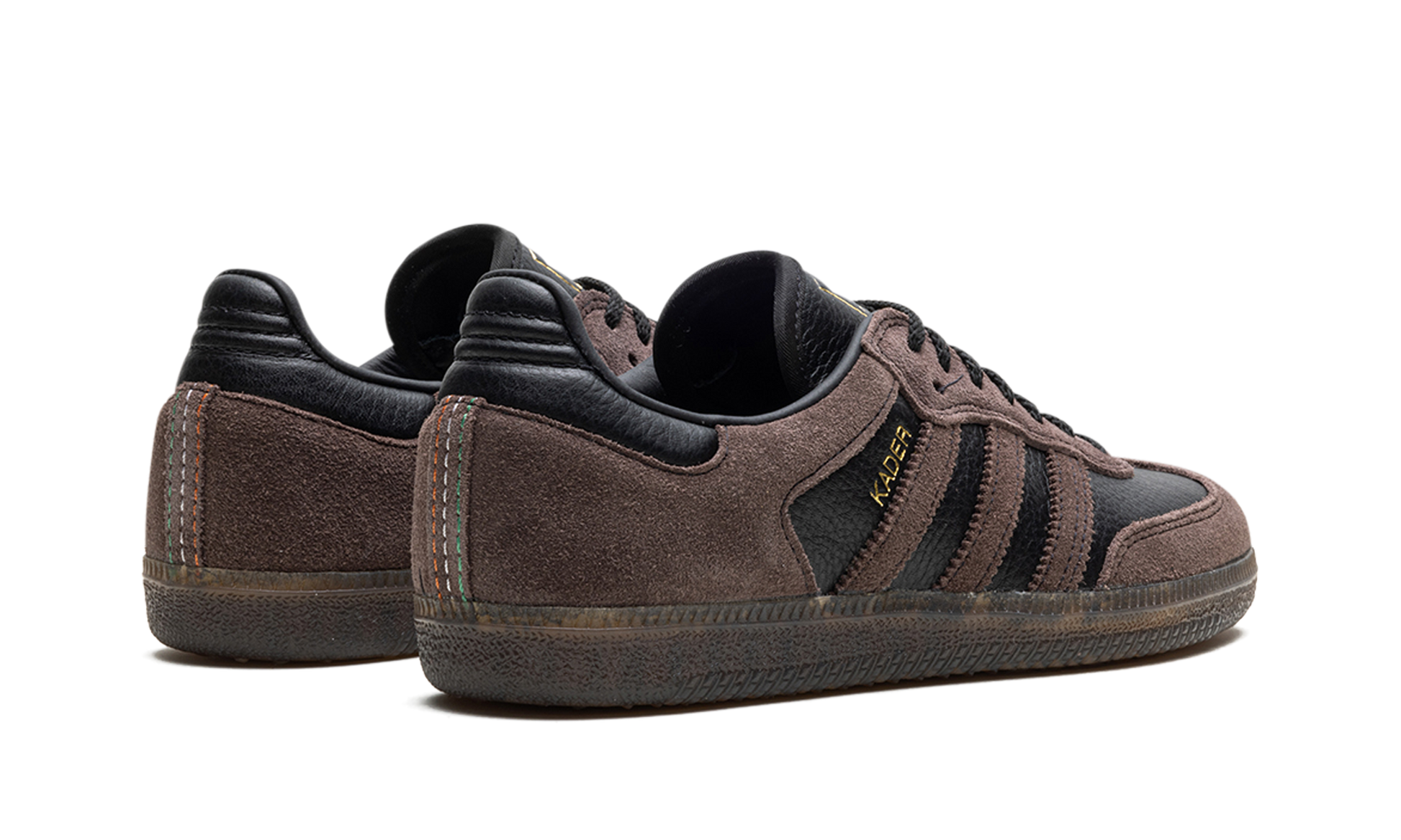 The adidas Samba ADV "Kader Sylla" is a collaboration between the professional skateboarder and adidas on a skate-ready version of the retro shoe. Modified specifically for skateboarding. the Samba ADV for Kader features a black tumbled leather base with brown suede overlays on the forefoot and heel. as well as on the Three Stripes branding. A “Kaderâ€?logo appears in gold foil next to the Three Stripes on the lateral side of the shoe. Underfoot. the gum rubber sole provides traction for optimal board feel or casual daily wear. Release date: February 10. 2024
