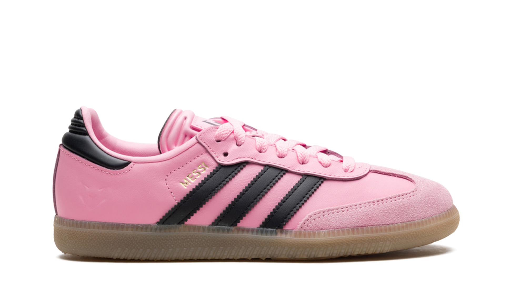 Step into a world where sport meets greatness with the Samba Lionel Messi Inter Miami CF Debossed Home Kit. This celebrated collaboration features the team's vibrant pink accents on a sleek upper. Debossed team and Messi details elevate the design. delivering a comfortable fit and a versatile look that's perfect for making a powerful statement on the streets.