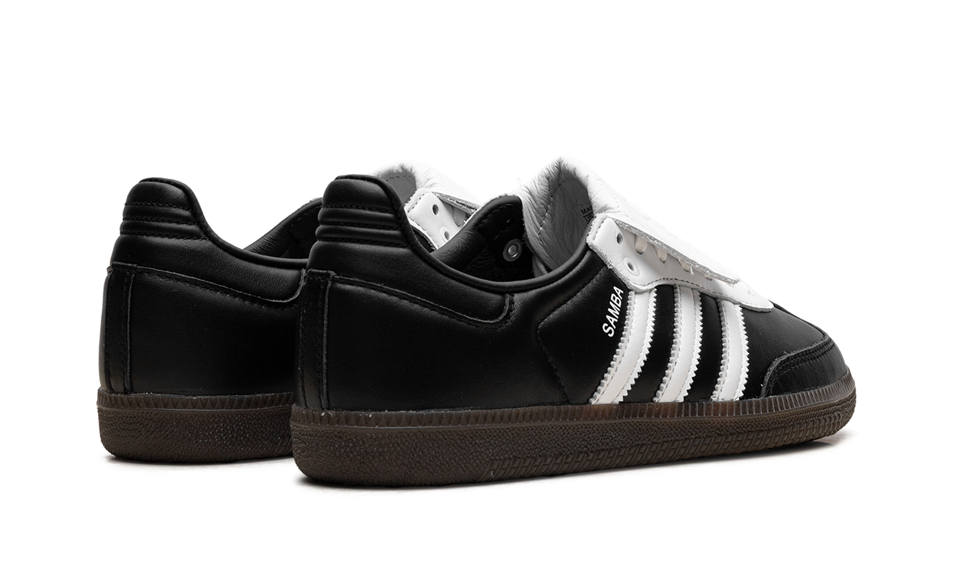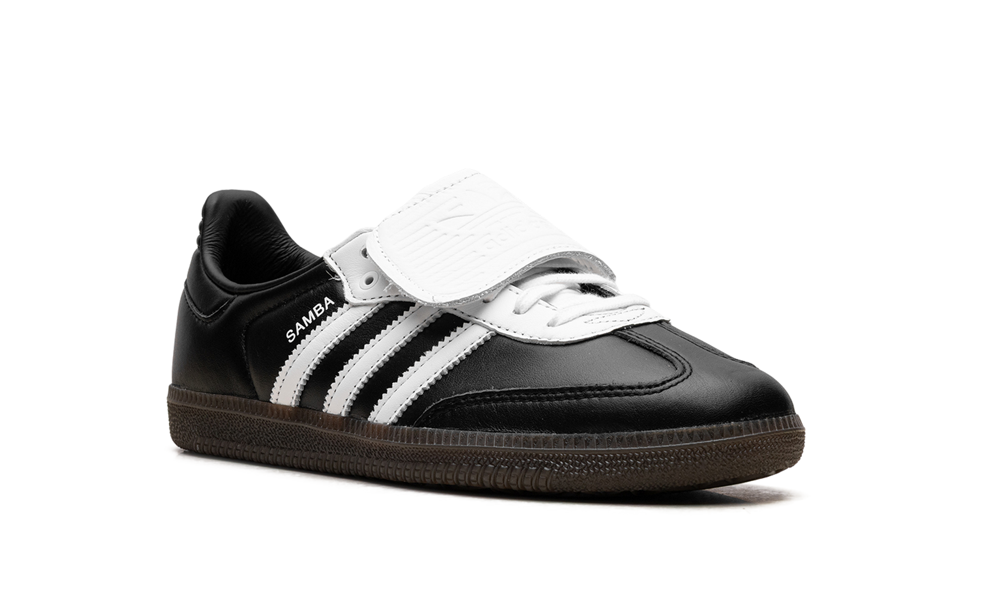 Experience the evolution of a legend with the adidas Samba LT "Core Black Cloud White" sneaker. This stylish update to the iconic Samba silhouette is a head-turner. featuring the classic full-grain black leather upper. serrated white 3-Stripes. and a suede T-toe. The most notable detail is the oversized. fold-over tongue. a bold nod to its football boot heritage that brings a sporty. fashion-forward edge. Finished with the signature gum rubber outsole for excellent grip. this sneaker is a timeless staple for any rotation.