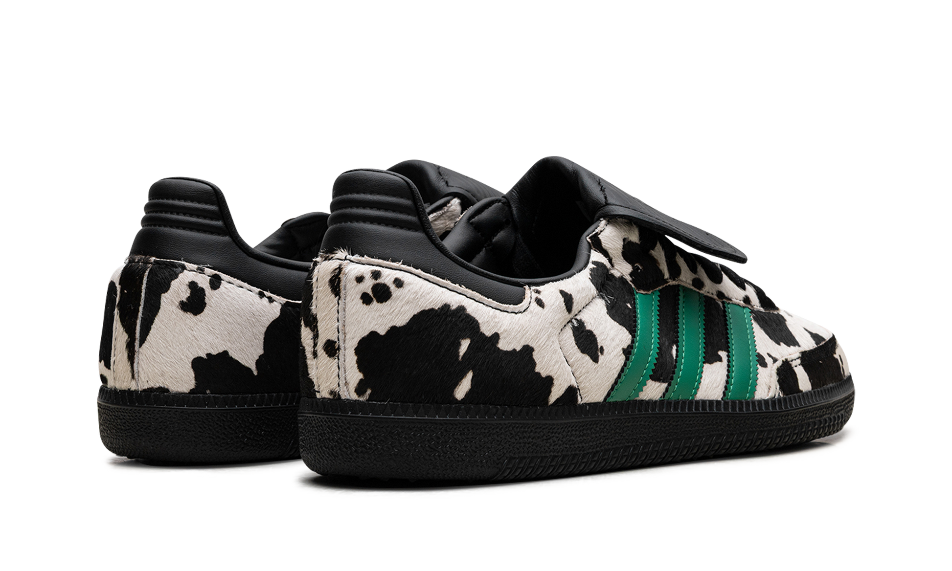 Unleash your wild side with the adidas Samba LT Wmns "Cow Print Black White" sneakers! This women's-exclusive style revitalizes the iconic Samba silhouette with a playful. black and white cow print overlay crafted from plush faux pony hair. The design is instantly recognizable with the signature serrated 3-Stripes and a heritage-inspired long. fold-over tongue that nods to the shoe's soccer roots. Finished with smooth leather accents and a durable black rubber sole. these comfortable and bold kicks are ready to make a statement in your street-style rotation.