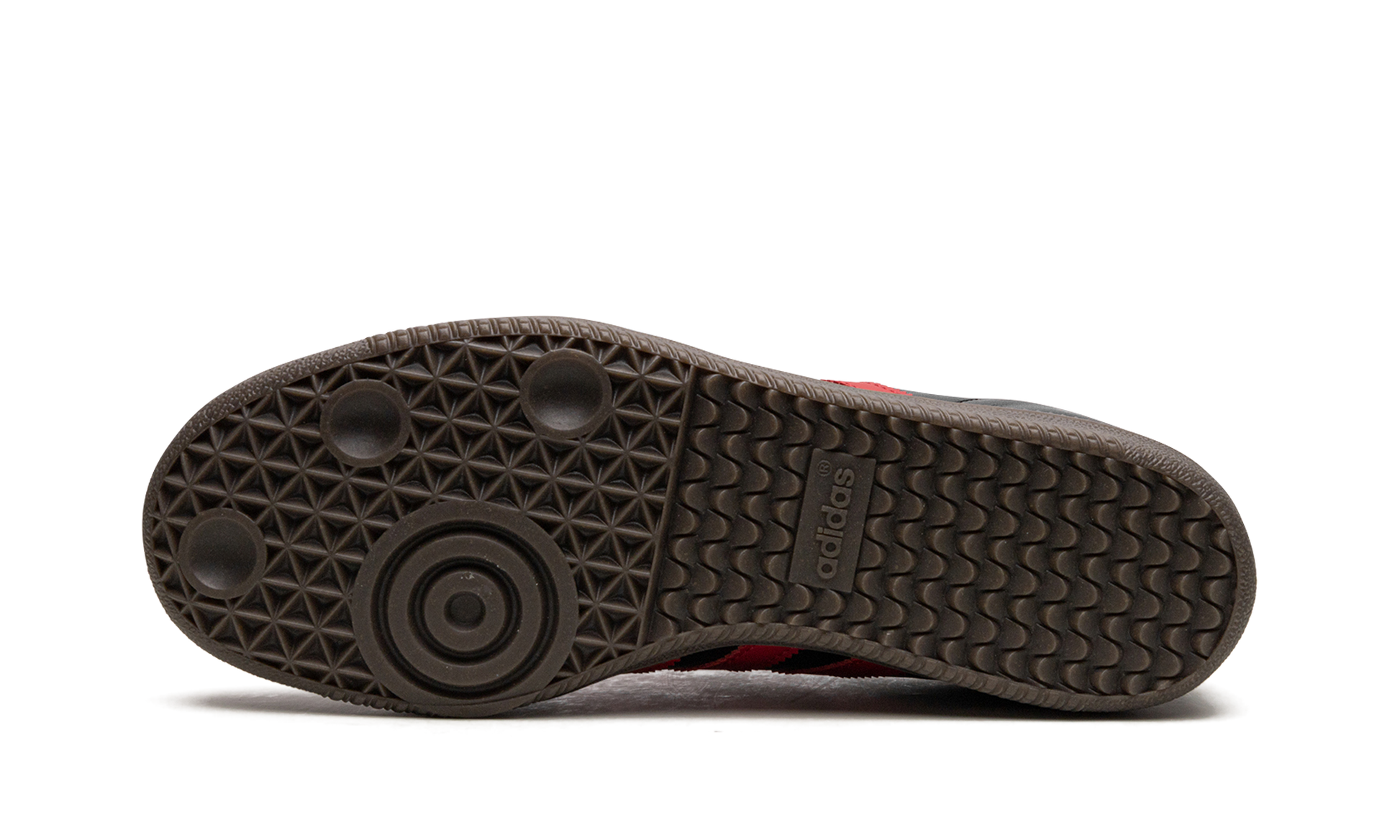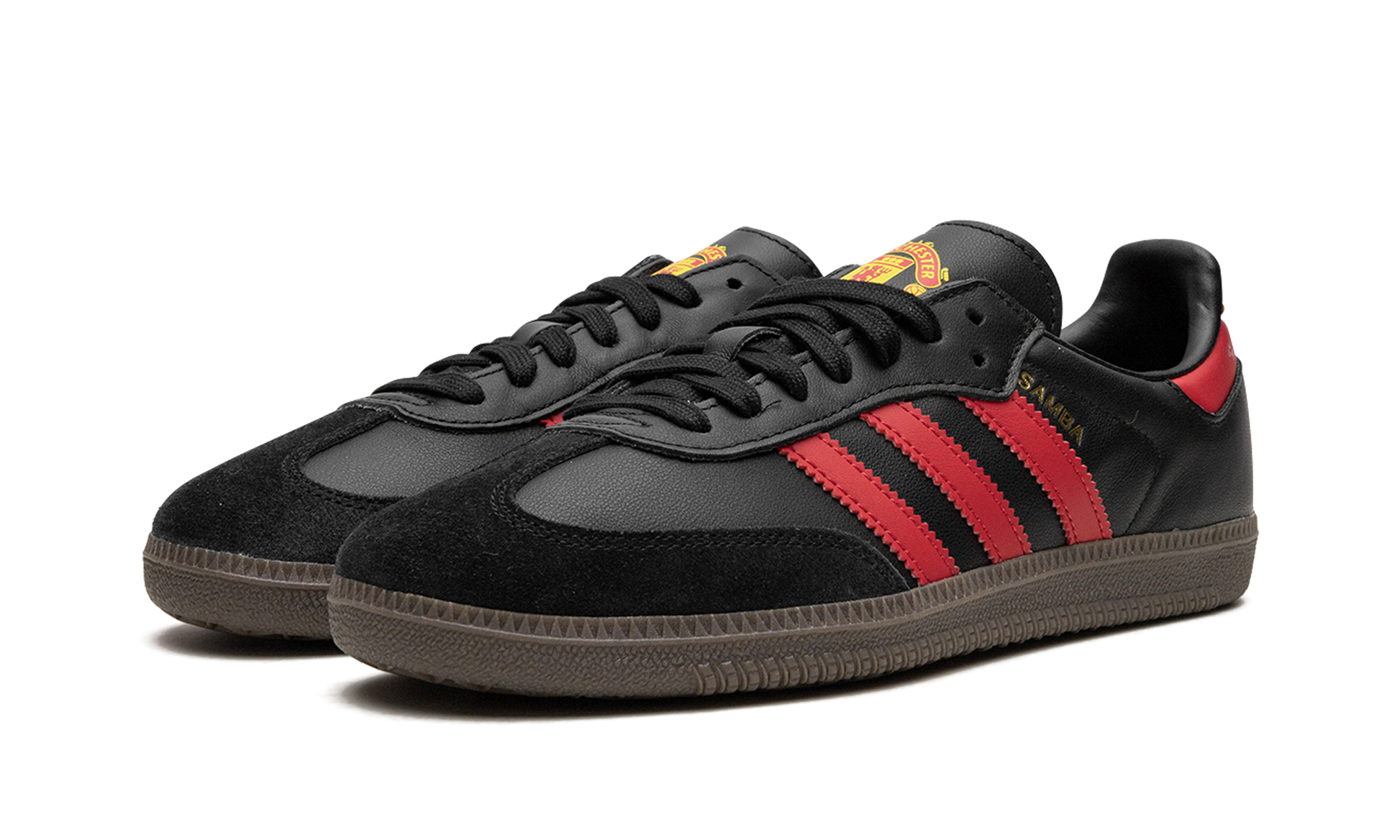 The adidas Samba “Manchester Unitedâ€?is a special colorway of the iconic sneaker for fans of the storied soccer club. Manchester United's colors and branding found on its kits are applied to the adidas Samba to great success. The shoe is complete with a black leather base with red leather Three Stripes detailing on the sides. Additional red leather can be found on the heel. A “Manchester Unitedâ€?graphic is located on the tongue. A dark gum rubber sole completes the look.