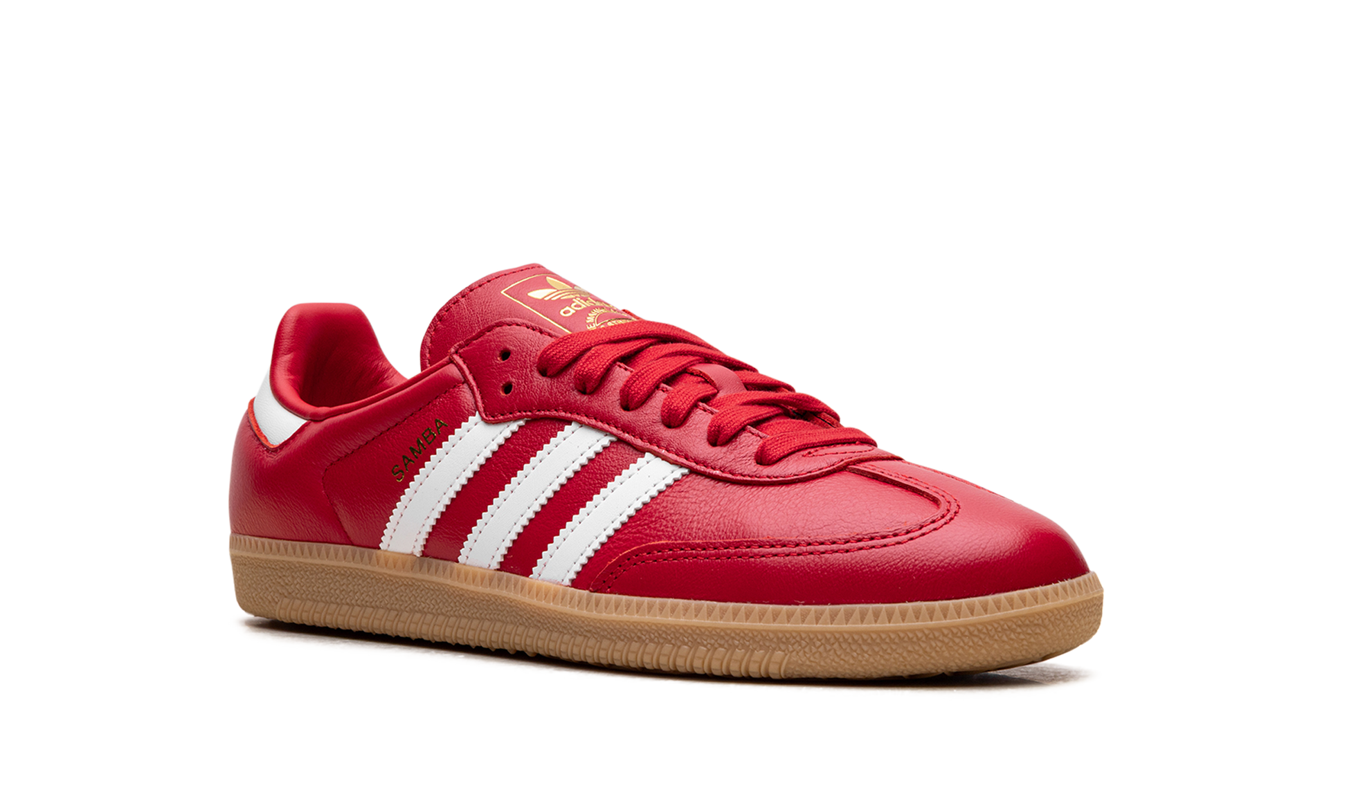 Step into an icon with the Adidas Samba OG 'Better Scarlet'. the timeless sneaker getting a vibrant refresh. This classic silhouette. originally designed for indoor football. features a rich Better Scarlet leather upper contrasted by crisp white serrated 3-Stripes and a signature suede T-toe. The low-profile gum rubber outsole offers superior grip and its retro aesthetic makes it a versatile staple for any casual. street-style wardrobe. Lace up a legend and bring a pop of classic color to your look!