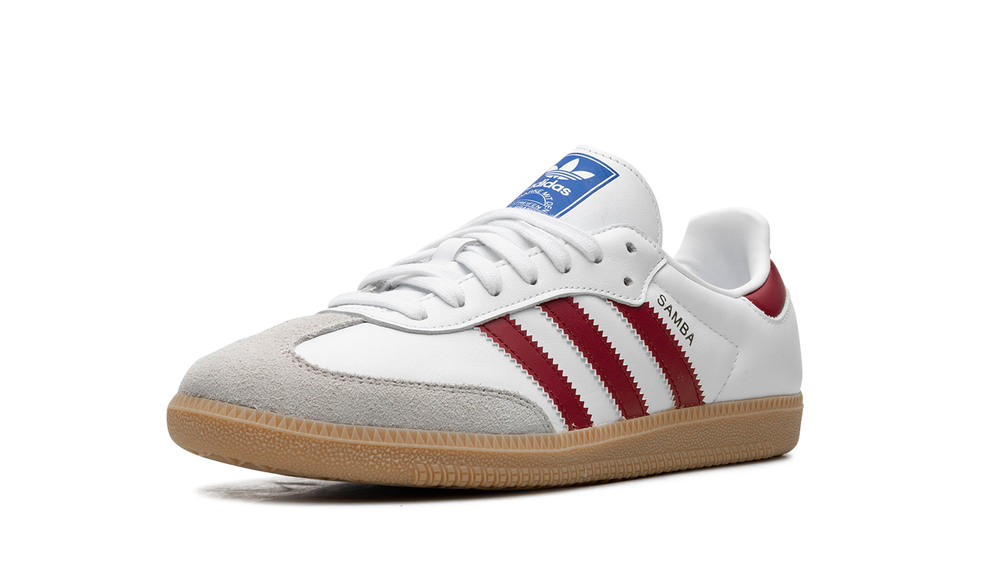 The adidas Samba OG “Collegiate Burgundyâ€?is a colorway of the retro soccer shoe with a clean. versatile appearance. The colorway is complete with a white leather upper. a grey suede overlay on the toe. and Collegiate Burgundy leather Three Stripes branding on the sides. Additional Collegiate Burgundy accenting appears on the heel tab. A gold foil “Sambaâ€?logo is printed on the lateral side of the mid-panel. and classic adidas branding can be found on the tongue. A gum rubber sole completes the look.