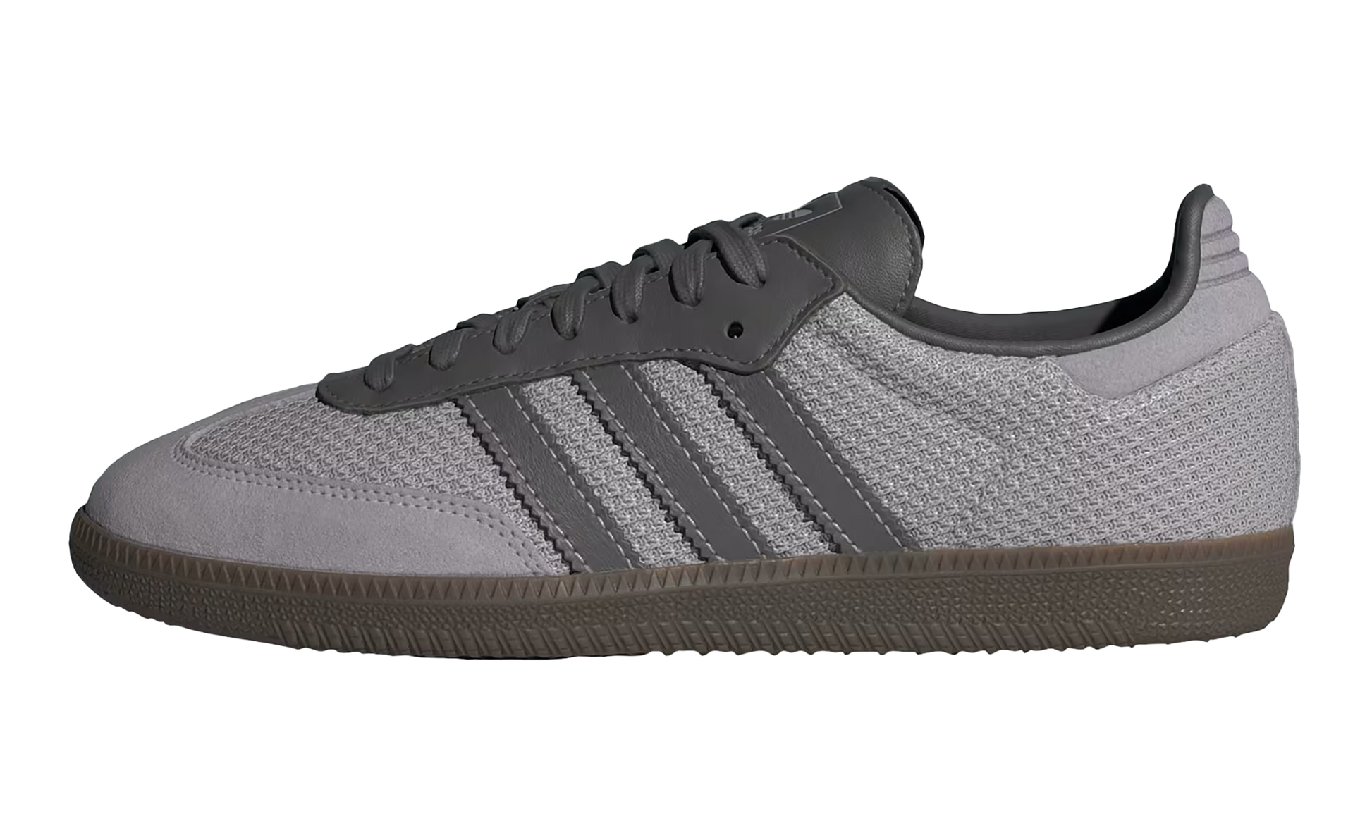 Born on the pitch and built for the street. the ADIDAS Samba OG "Glory Grey/Charcoal" sneaker is a timeless icon. This edition. simply called "Glory Grey." evolves the classic silhouette with a sleek knit textile upper and a soft suede T-toe for enhanced comfort and texture. Featuring the iconic serrated 3-Stripes and signature gum rubber outsole. this shoe embodies over 70 years of athletic heritage while remaining a clean. modern staple for today's casual style.