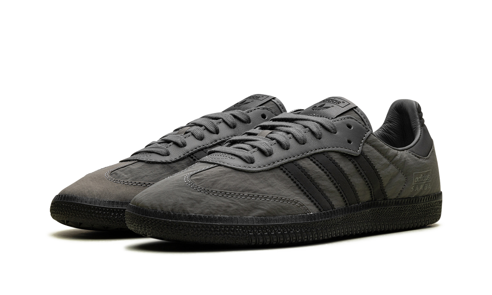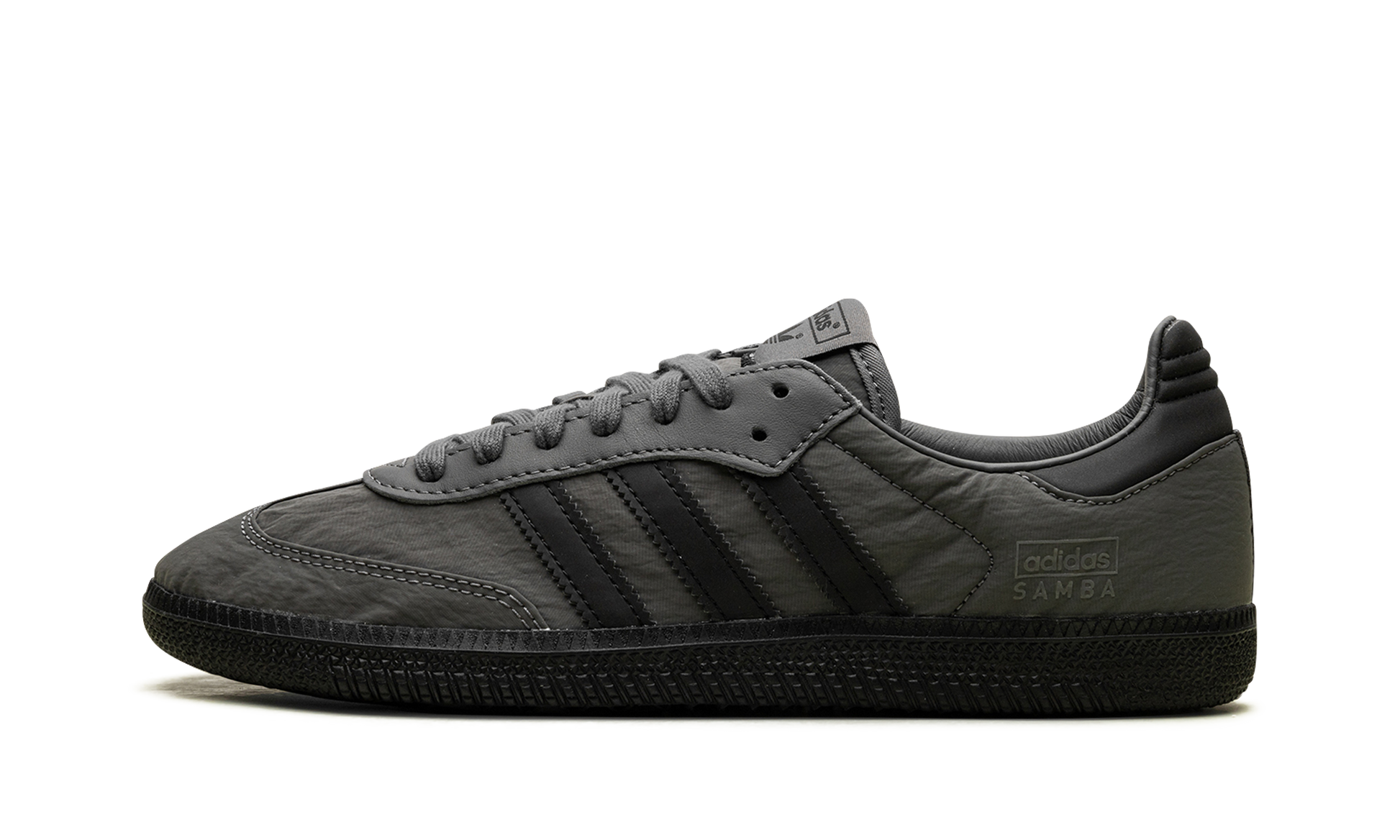Perfectly balanced between classic sport and modern street style. the Adidas Samba OG. nicknamed "Grey Five Core Black". is your next essential sneaker. This version features a cool "Grey Five" leather upper contrasted by bold "Core Black" accents on the serrated Three-Stripes and heel tab. The signature suede T-toe adds textural depth. while the durable gum rubber outsole grounds the design in its rich heritage. Elevate your everyday rotation with this versatile. iconic look.