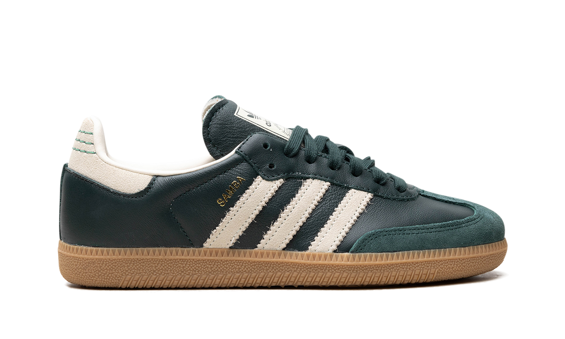 Step into a classic with the Adidas Samba OG "Shadow Green Samba." This iconic silhouette gets a sophisticated update with deep Shadow Green suede and a smooth Cream White leather upper. offering a truly premium feel. The signature gum sole grounds the design in heritage. while the Gold Metallic branding on the tongue and side adds a luxurious pop. Perfect for effortlessly elevating any everyday outfit. this sneaker is a must-have for those who appreciate timeless style and versatility.