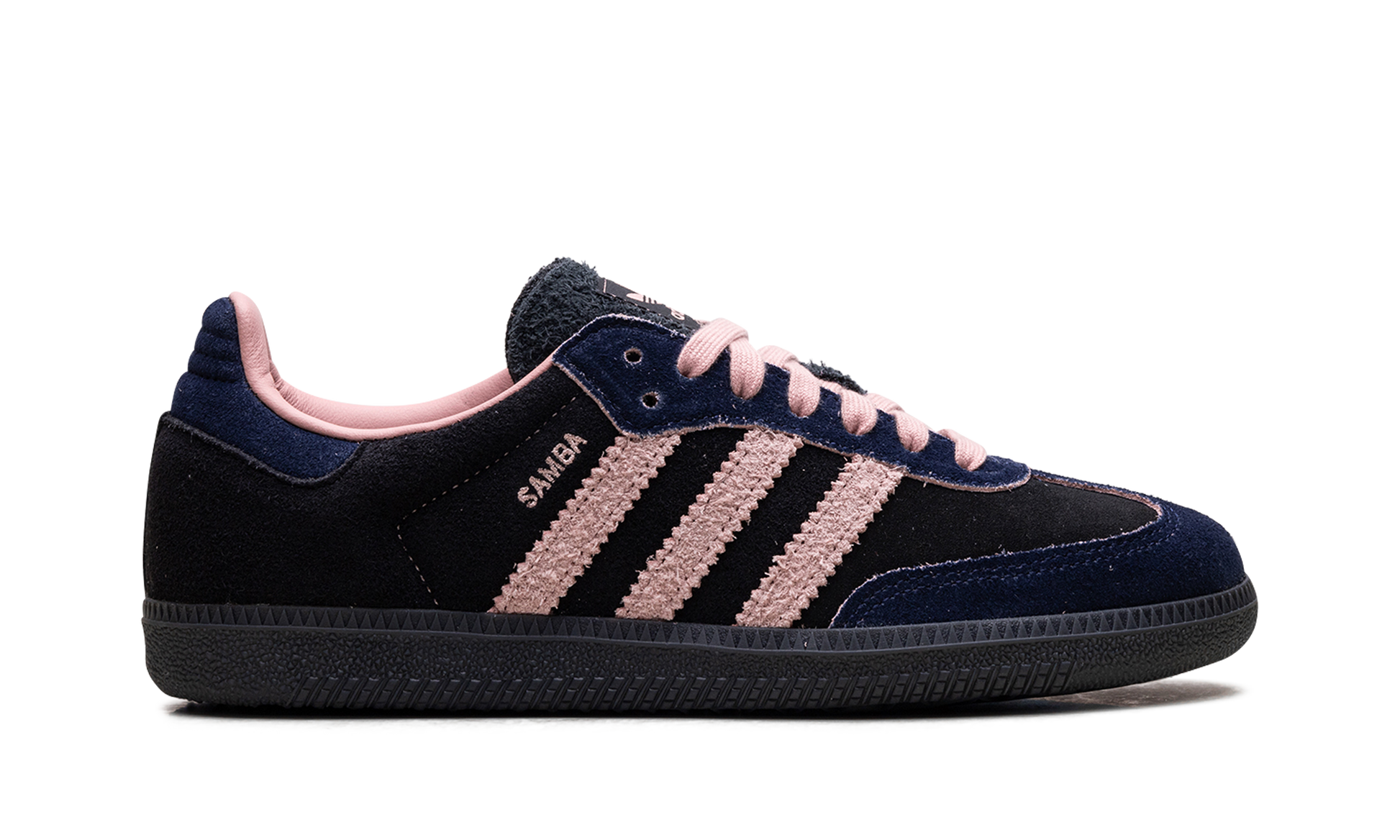 Step into a rich. sophisticated aesthetic with the Adidas Samba OG Wmns "Black / Wonder Mauve / Indigo". This celebrated women's sneaker features a black suede upper complemented by sleek Indigo Three Stripes and Wonder Mauve accents. Enjoy superior cushioning and a design that's perfect for making a stylish statement with a subtle pop of color.