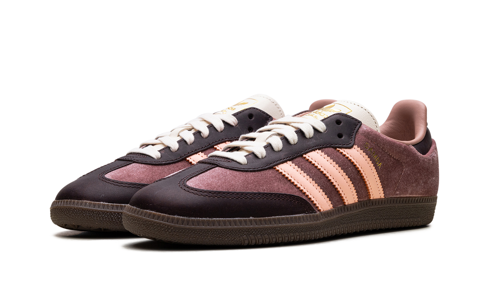 Add a luxurious touch to your rotation with the adidas Samba OG Wmns "Warm Clay Clear Orange" sneaker! This iconic silhouette is reimagined with a plush Warm Clay velvet upper and sophisticated suede details. offering a chic. textural upgrade. Pops of Clear Orange on the 3-Stripes and heel tab provide a warm. contrasting accent. Finished with the signature gum rubber sole. it perfectly blends sports heritage with premium street style for a confident. fashionable look.